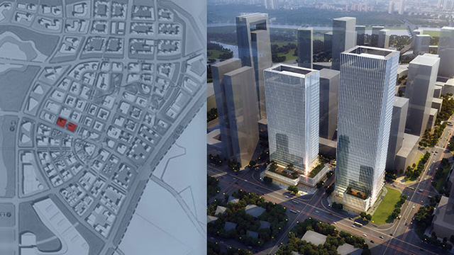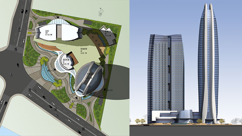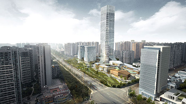項(xiàng)目位于成都市天府新區(qū)中央商務(wù)區(qū),為該區(qū)域重大產(chǎn)業(yè)項(xiàng)目。用地位于中央生態(tài)帶和東西向軸線寧波路的交匯之處,地理位置極為重要。地面總建筑面積為21萬平方米,分為兩座35層和45層超高層塔樓,建筑高度分別為160米和220米。