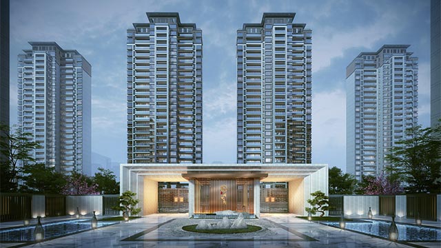 規(guī)劃以軸線形式,串聯(lián)各空間次序,形成多重院落。在高低配產(chǎn)品組合下對用地資源的最大釋放,尊重景觀至上的功能主義,由公共到私屬,逐步形成星級入戶的空間體驗(yàn)。項(xiàng)目產(chǎn)品以“精致、輕奢”特點(diǎn)升級人居體驗(yàn),強(qiáng)調(diào)戶型的功能性、舒適性以及可變性,使現(xiàn)有的居住空間能滿足全年齡購房者的需求。