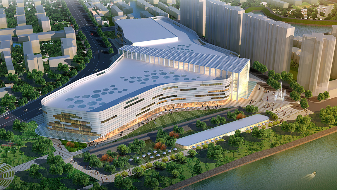 在平面布置上,淄博SM采用了SM城市廣場(chǎng)一貫使用的典型美式商業(yè)Mall的布局,以一條商業(yè)內(nèi)街和大型中庭為主軸貫穿整個(gè)建筑。沿商業(yè)街布置垂直交通體系來組織人流,和絕大多數(shù)美式商業(yè)Mall一樣采用天光,使內(nèi)街在全中央空調(diào)的環(huán)境里能享受到自然光。在淄博項(xiàng)目上,總平布局和商業(yè)內(nèi)街的設(shè)計(jì)打破了以往貫用的直線手法,而采用流線處理,使整個(gè)建筑內(nèi)外空間都充滿了活力。由于是一棟多層建筑,從高處俯視淄博SM城市廣場(chǎng),建筑物就如一只在飛翔的海鷗。