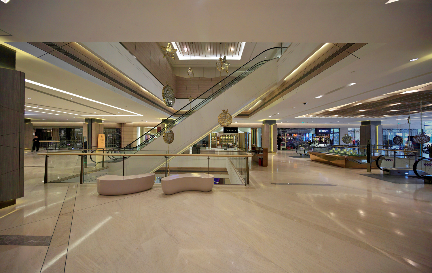 本次改造主要包括地下車庫、后勤管理用房、商業(yè)、辦公樓大堂及標(biāo)準(zhǔn)層的公共區(qū)域、酒店式公寓及會所等整體室內(nèi)工程,以及室外城市廣場景觀、商業(yè)立面等。通過建筑、結(jié)構(gòu)、機(jī)電、室內(nèi)、導(dǎo)視、景觀、幕墻、照明等專業(yè)工程師的緊密配合,旨在通過創(chuàng)新型的現(xiàn)代設(shè)計手法和專業(yè)設(shè)計,重塑了嘉里中心的商業(yè)定位及其氛圍,提升了其商業(yè)價值與品質(zhì)。