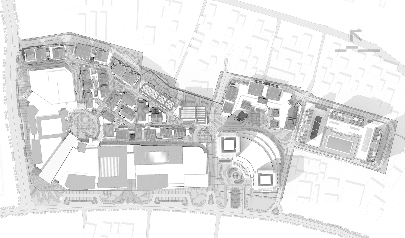 規(guī)劃建設(shè)用地面積為73438.62平方米,容積率3.05,規(guī)劃總建筑面積約31萬平方米。項目擬建購物中心、風(fēng)情商業(yè)街、主題酒店、公寓、商務(wù)酒店及停車樓;地下1層,地上3-25層。設(shè)計將多種功能進行組合布局,通過彼此在用地平衡、開發(fā)計劃、空間形態(tài)、資源利用等方面進行全面規(guī)劃,全面提升地塊的活力,為本地居民帶來了可持續(xù)發(fā)展的生活方式。