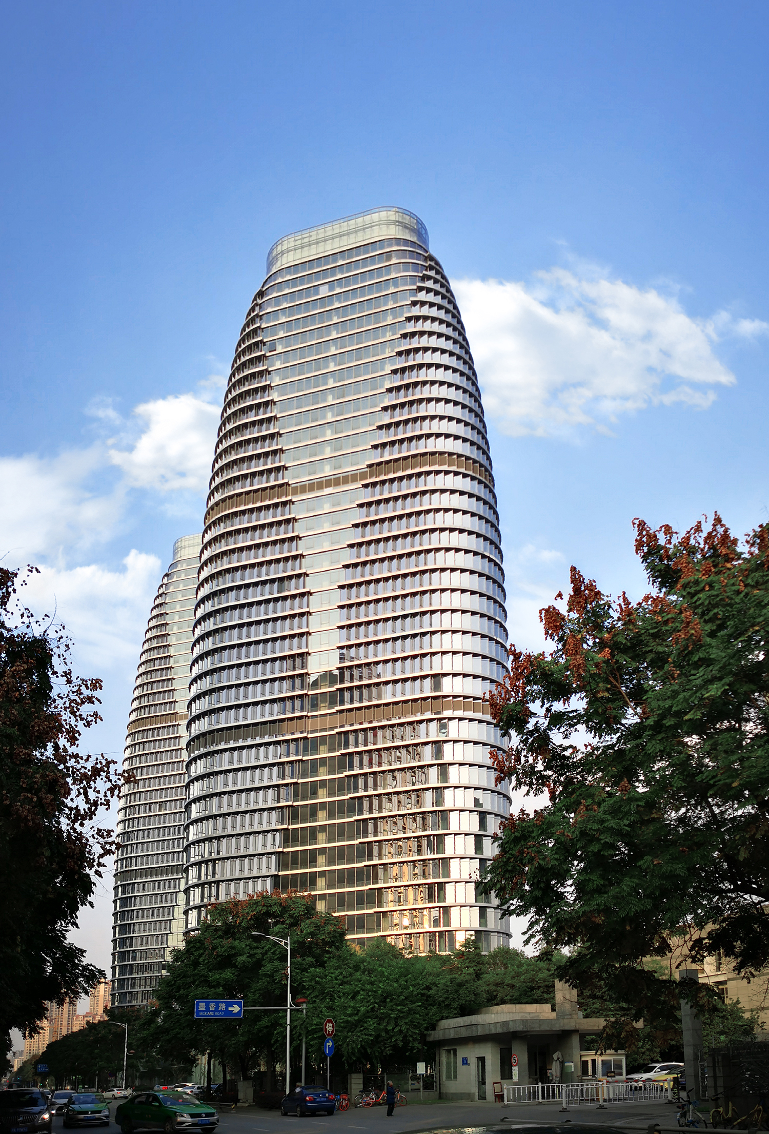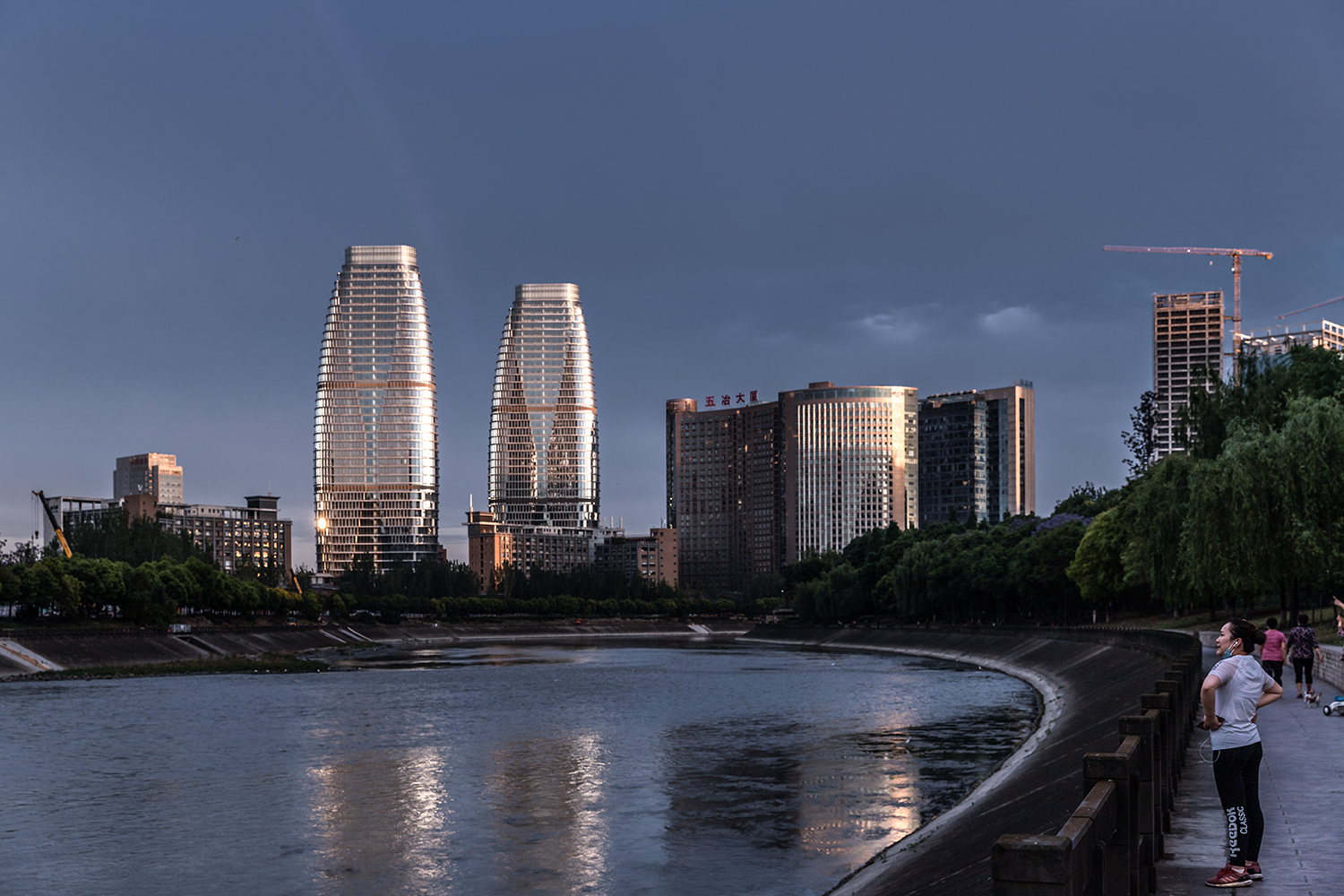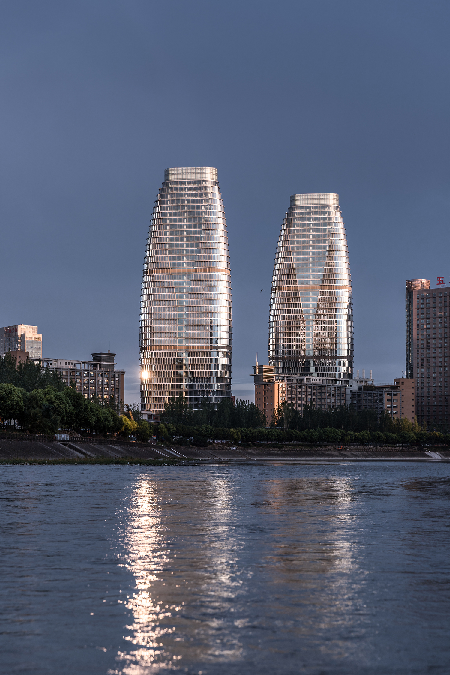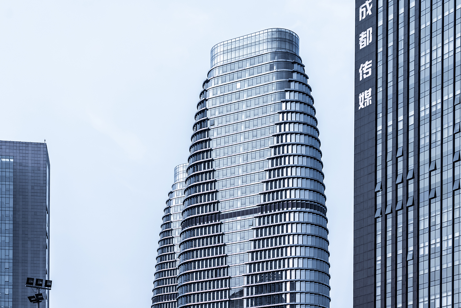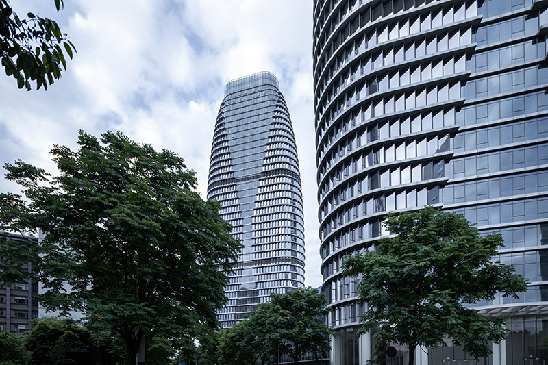 項(xiàng)目位于成都高新南區(qū),美麗的錦江河畔,兩棟塔樓分別作為新華文軒和新華發(fā)行集團(tuán)的總部辦公樓。塔樓體量巨大,建筑高度42層達(dá)180米,設(shè)計(jì)以“書(shū)山”為形象創(chuàng)意出發(fā)點(diǎn),三角形平面布局爭(zhēng)取了最大的錦江景觀觀賞面。