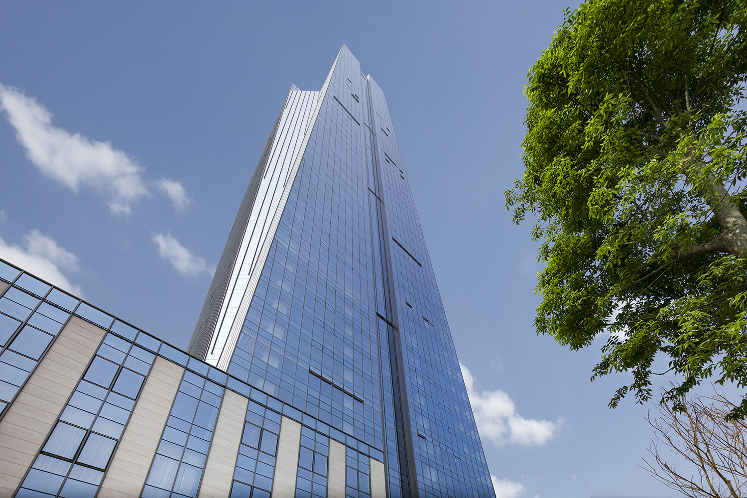 不同于很多造型夸張的地標(biāo)建筑的設(shè)計(jì),中交國際中心的設(shè)計(jì)中,山鼎設(shè)計(jì)建筑師賦予其莊嚴(yán)、雄渾有力之感,可謂是對地標(biāo)建筑全新的解讀。
