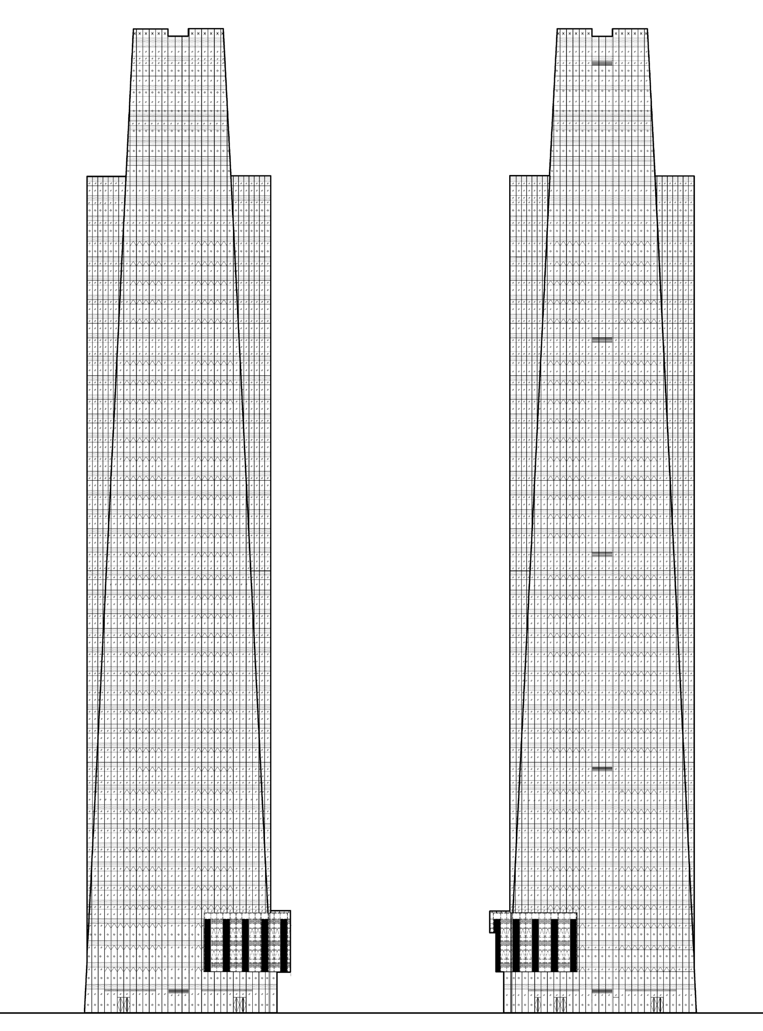 建筑頂部門架式觀光廊橋是項(xiàng)目的點(diǎn)睛之筆。建筑師通過對業(yè)主企業(yè)文化的理解和概括,抽象出最具代表性的建筑形體。門架造型隱喻“中交之門、天府之門的”精神內(nèi)涵,莊嚴(yán)的建筑形態(tài)體現(xiàn)“行天下、天下行”的國際化大企業(yè)氣質(zhì),傳達(dá)了四通八達(dá)的企業(yè)文化。