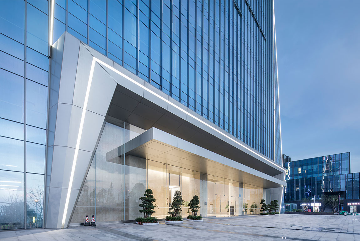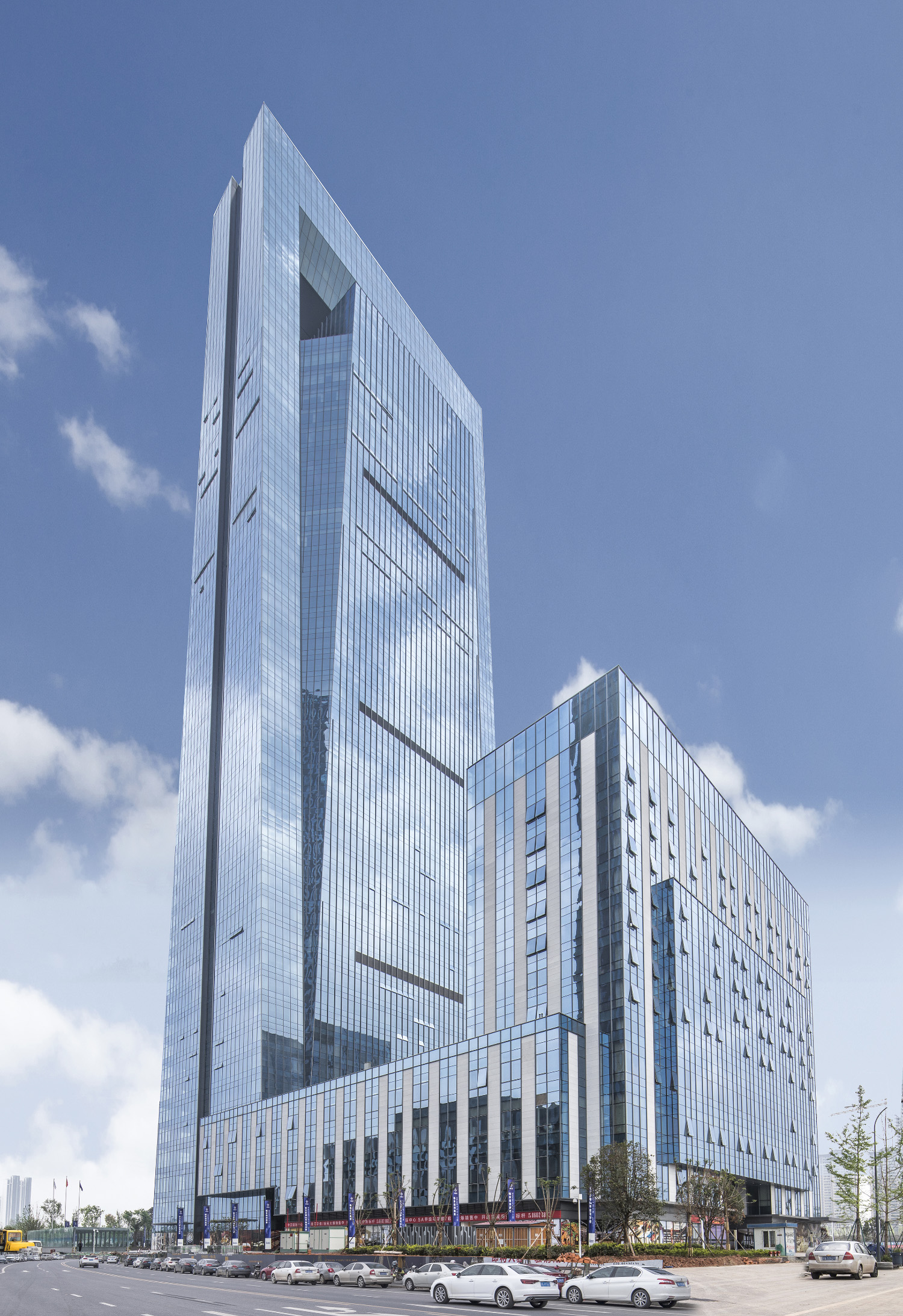 中交國際中心由一棟220M的超高層甲級辦公樓,一棟144個(gè)房間的商務(wù)精品酒店,4層定制型商業(yè)商務(wù)配套等建筑組成集合式綜合體。項(xiàng)目位于成都天府新區(qū)秦皇寺中央商務(wù)區(qū),緊鄰天府公園,占據(jù)區(qū)域最佳自然環(huán)境。高密度的城市中心,便利的交通,一線景觀資源,最佳城市展示面。諸多條件決定了項(xiàng)目具備了城市地標(biāo)的潛力。