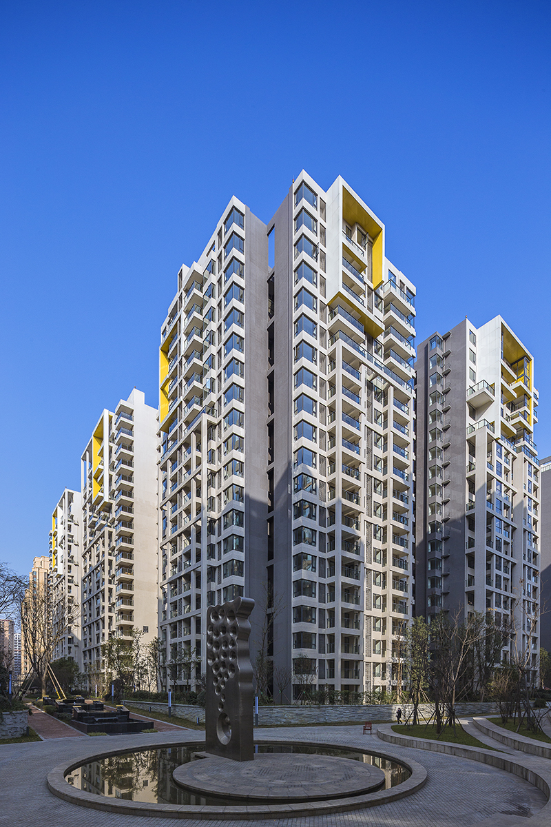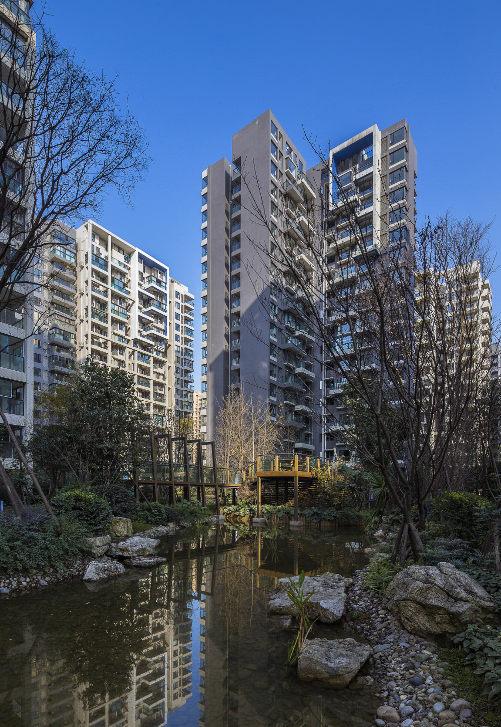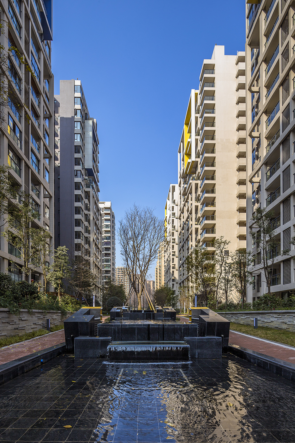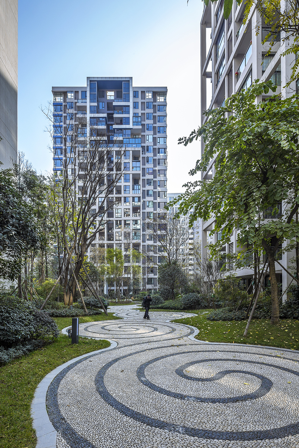 設計充分結(jié)合成都地區(qū)日照的優(yōu)勢,以半圍合布局為主,形成空間組團,并分區(qū)導入景觀主體園林,實現(xiàn)了高強度開發(fā)并保障社區(qū)優(yōu)質(zhì)居住環(huán)境品質(zhì)的設計挑戰(zhàn)。設計開始時,就確定了以科技和綠色環(huán)保為發(fā)展高度,以新加坡建屋局Green Mark環(huán)保認證為設計要求,其中地源熱泵系統(tǒng)的運用成為包括會所在內(nèi)的公共區(qū)域的能源供給,對于公共區(qū)域能源消耗所關聯(lián)的物管成本控制起到關鍵作用,地面雨水的收集和再利用,也成為項目節(jié)能的另一個亮點,除此之外的整套綠色建筑控制系統(tǒng),使本項目成為西南地區(qū)最早獲得國際 “綠色建筑”認證的住區(qū)。