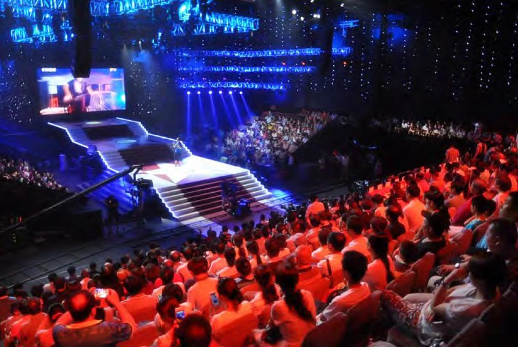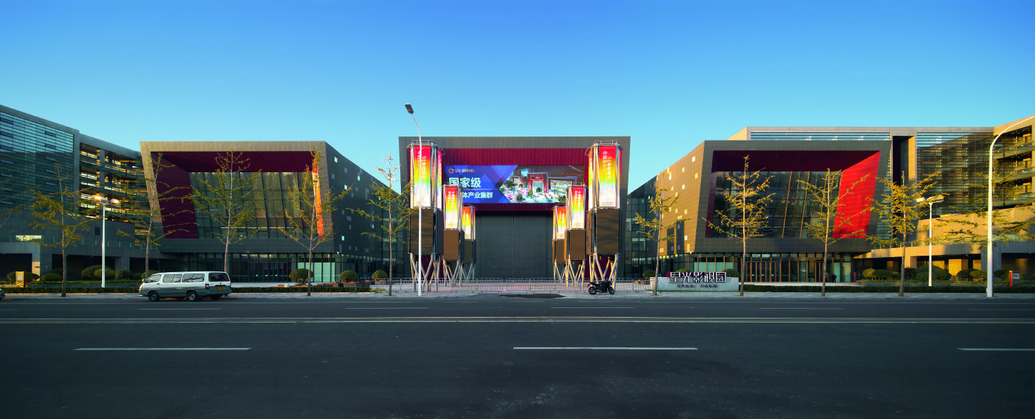 項(xiàng)目最大的演播廳單體面積達(dá)到3,300平方米,建成后將成為亞洲第一演播廳,其跨度近50米,縱向63米,此演播廳的大門史無(wú)前例地采用了類似飛機(jī)庫(kù)的大滑動(dòng)門設(shè)計(jì),高16米,寬32米。在演播廳使用時(shí),當(dāng)滑動(dòng)門緩緩拉開,室內(nèi)的演出和室外的觀眾將連成一體,形成極具視覺(jué)沖擊力的超級(jí)大舞臺(tái)。項(xiàng)目另外的一個(gè)亮點(diǎn)是占地面積約6,000平方米的星光廣場(chǎng)和一條紅地毯鋪就的星光大道。