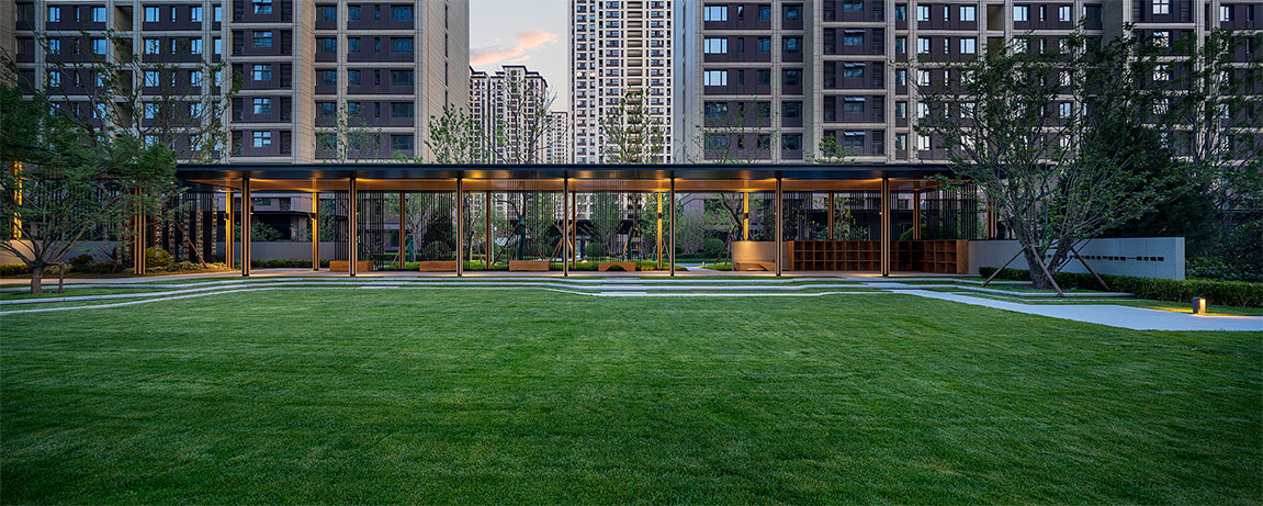 項(xiàng)目位于濟(jì)南市歷城區(qū),鳳鳴路以東,韓倉(cāng)河西岸,毗鄰酒吧街、星際酒店,與蓮花山相望。項(xiàng)目周邊大面積綠地,東面臨水,位于文旅城極佳地理位置。項(xiàng)目規(guī)劃傳承中國(guó)的傳統(tǒng)空間秩序,呈現(xiàn)中軸對(duì)稱(chēng)的規(guī)劃格局,強(qiáng)調(diào)庭院空間的均好性,展示由公共逐漸走向私密的空間序列,并充分結(jié)合建筑禮序,規(guī)劃空間園區(qū)外景觀條件,通過(guò)空間收放變化和多樣化的綠化配置形成高低錯(cuò)落,疏密相間的綠化景觀界面,建筑與綠化界面在不同的高度上相互穿插,形成豐富的層次,保證每戶享受最好的景觀朝向,處處有景。立面設(shè)計(jì)以東方建筑美學(xué)為核心,通過(guò)新的材料、新的設(shè)計(jì)形式來(lái)表現(xiàn)新東方風(fēng)格的精致、典雅,來(lái)追尋技術(shù)美與人情味的和諧統(tǒng)一,使居住者情感回歸于寧?kù)o與自然。