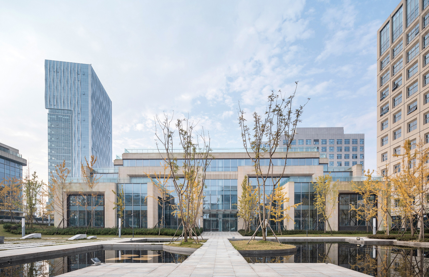 “經(jīng)過多輪嘗試與溝通,我們希望能為天府新區(qū)科學城提供一個契合科研定位,融入興隆湖畔的建筑語言與空間形態(tài),展現(xiàn)企業(yè)辦公園區(qū)沉穩(wěn)干練,低調(diào)進取的文化精神?!盋endes項目總建筑師林升說。