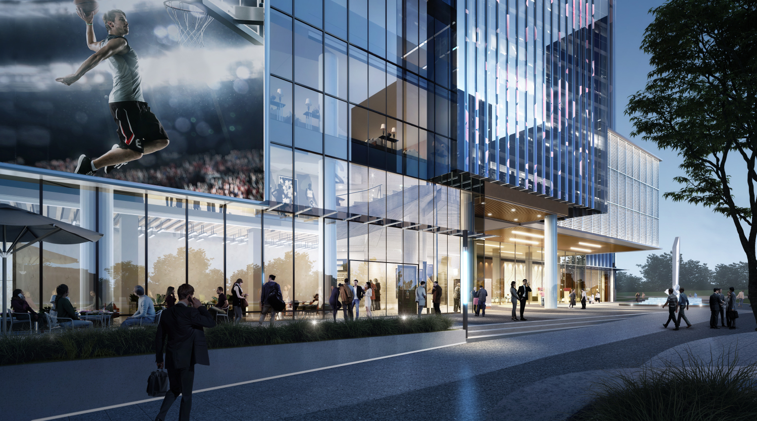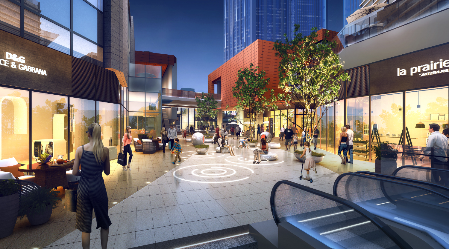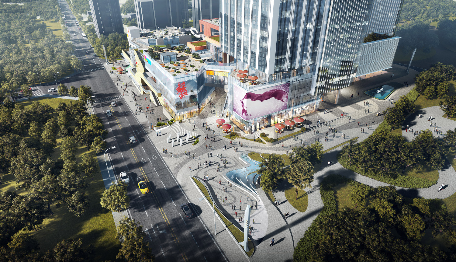 項目位于正公路與黃龍大道東南角,包括星級酒店、商務(wù)辦公及街區(qū)商業(yè)等。項目用地呈北高南低勢,多首層的建筑空間將場地高差的挑戰(zhàn)轉(zhuǎn)化為靈活的到達(dá)空間,人流主要為周邊居民、產(chǎn)業(yè)員工以及商務(wù)人士,東西南三個方向為主要人流流入方向,以西側(cè)為主。