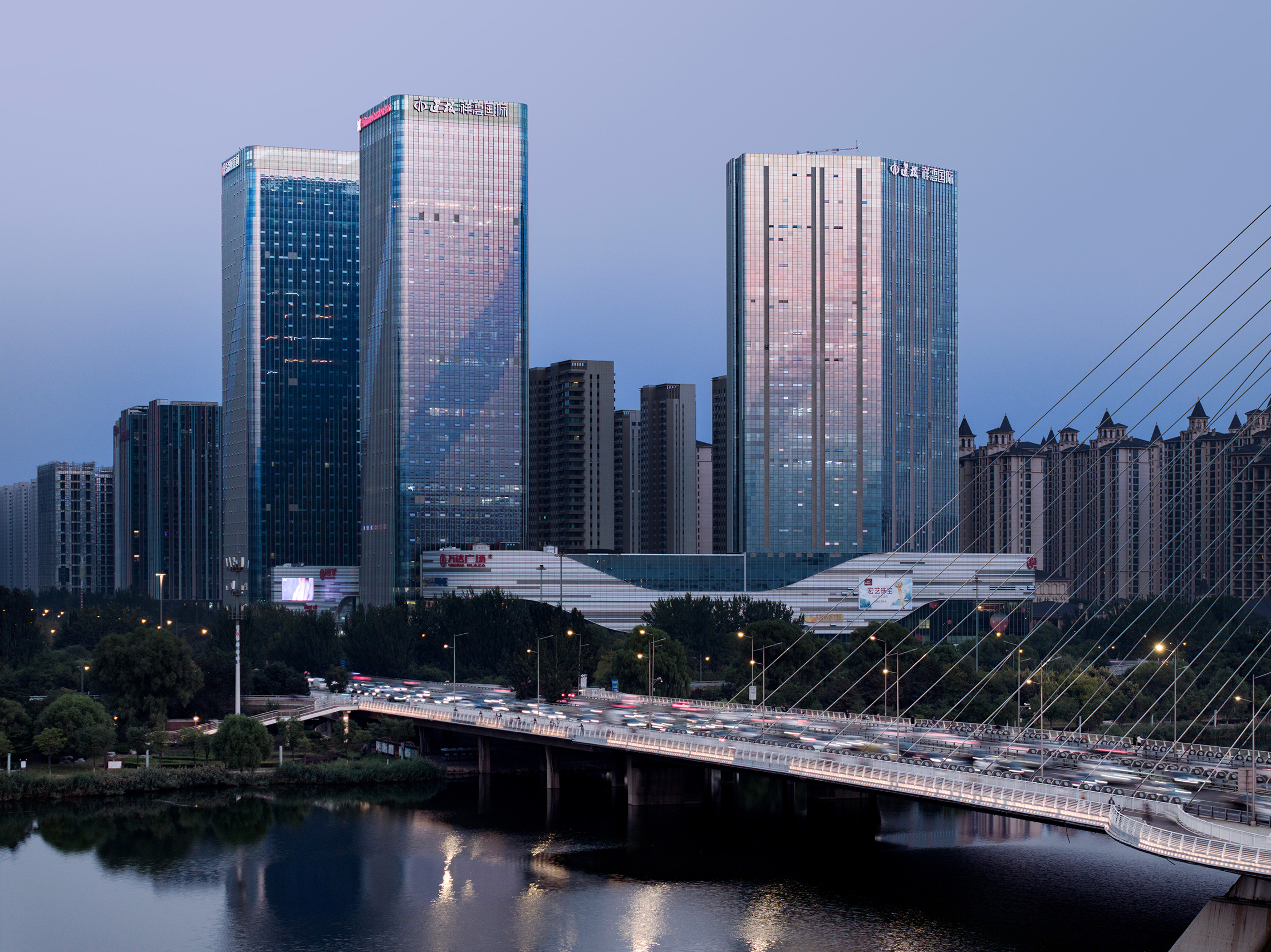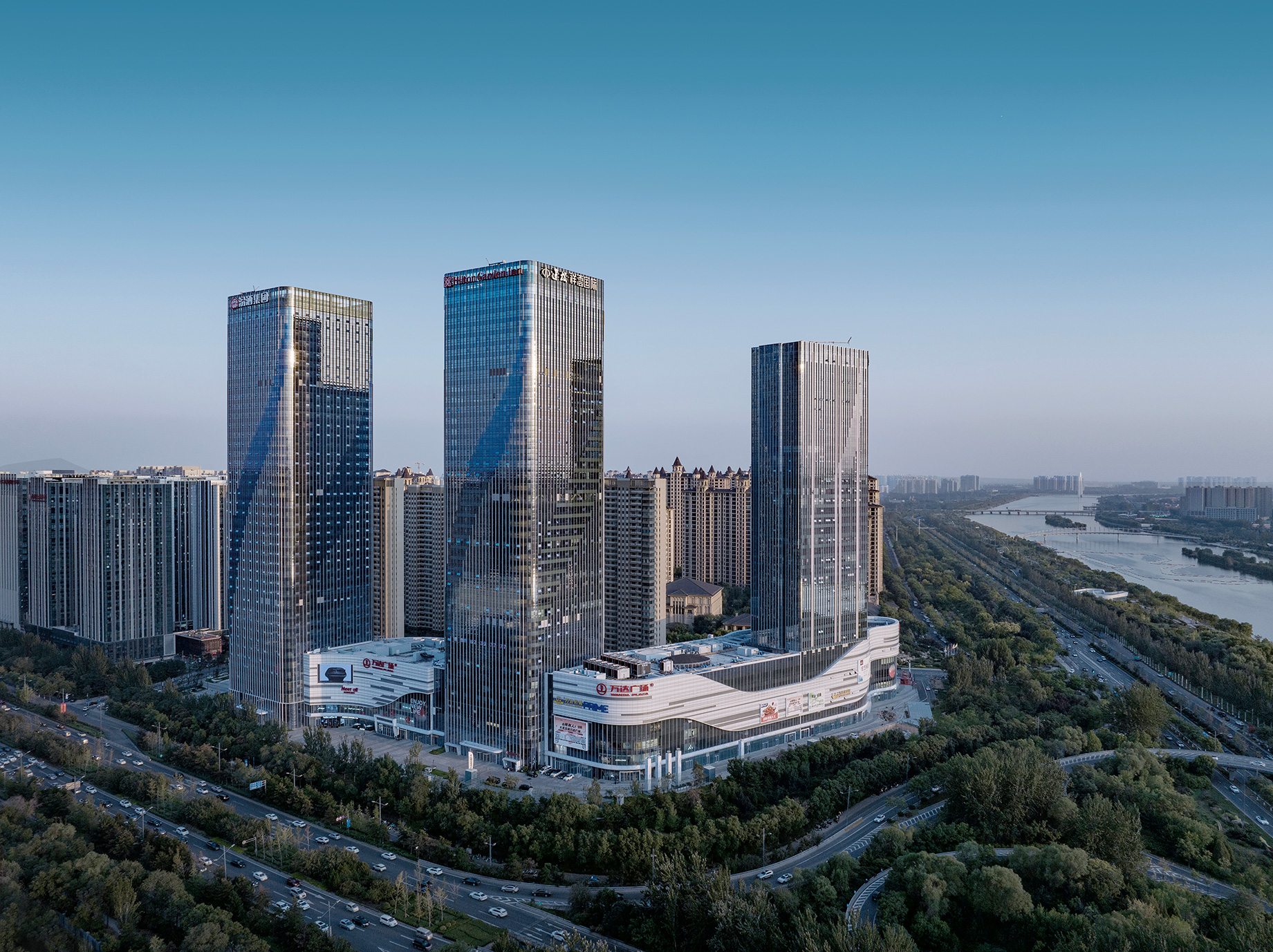 項目位于太原人文歷史軸線——汾河沿岸,同時被晉陽湖公園、祥云公園等六大生態(tài)公園環(huán)繞,是城市發(fā)展的核心地段。商務中心由三棟超高層寫字樓及商業(yè)裙房組成,多元復合業(yè)態(tài)集商業(yè)、辦公、酒店于一體,引入萬達廣場、希爾頓酒店等知名商業(yè)、酒店品牌。