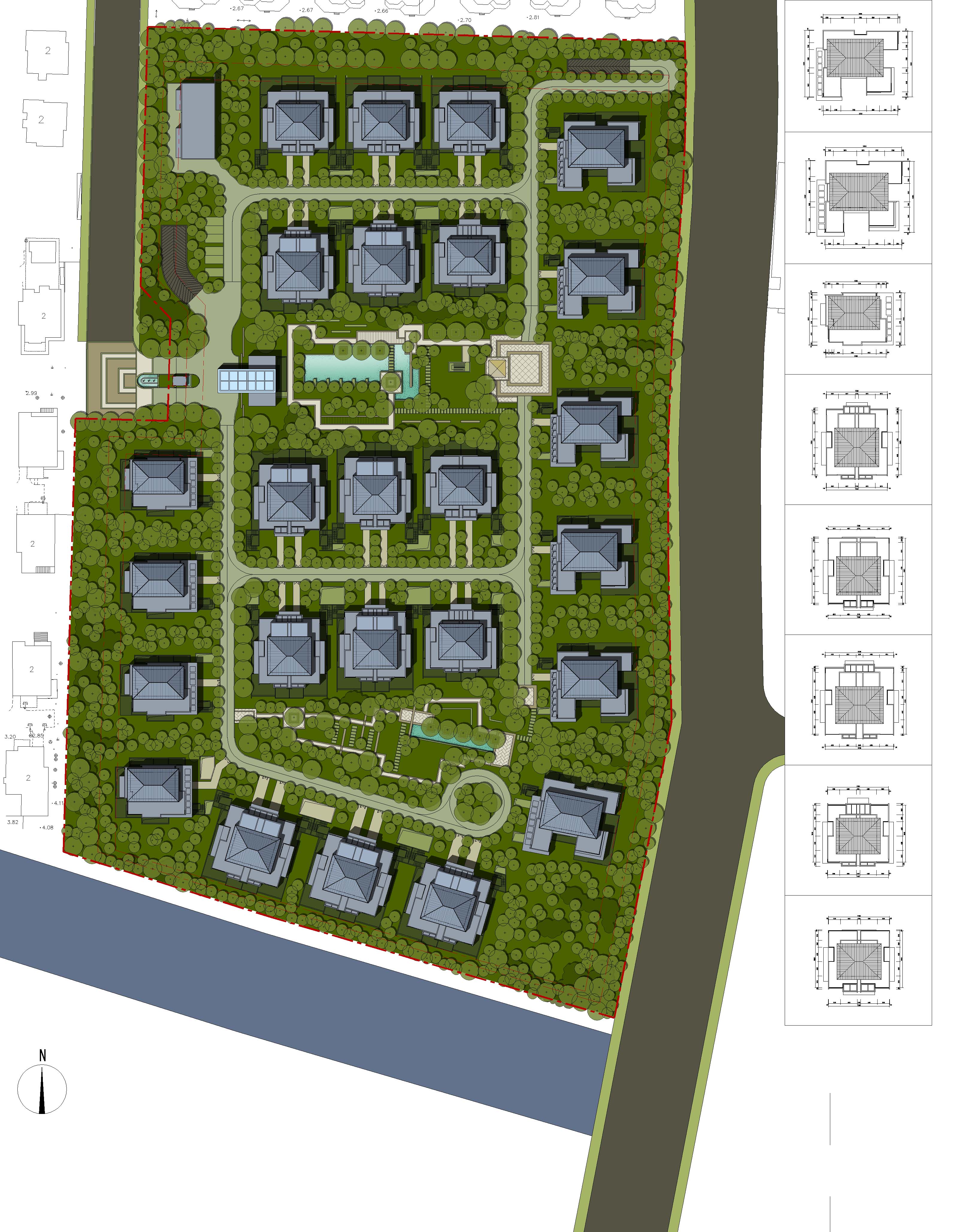 項(xiàng)目位于蘇州市工業(yè)園區(qū)金雞湖西畔,東側(cè)為金雞湖濱綠化帶和星洲街,西側(cè)為芙蓉街,南側(cè)是自然河道和綠化景觀帶,地理環(huán)境優(yōu)越??傆玫孛娣e約4.4萬(wàn)平方米,總建筑面積約3.4萬(wàn)平方米,容積率0.4 。共有別墅28棟,配套用房1棟。項(xiàng)目總體規(guī)劃理念旨在創(chuàng)造風(fēng)景式的別墅空間形態(tài),打造高品質(zhì)的現(xiàn)代城市家園別墅社區(qū)。建筑設(shè)計(jì)風(fēng)格典雅而溫馨,與周邊景觀充分融合,營(yíng)造了美觀舒適、健康和諧、生態(tài)節(jié)能的居住環(huán)境,是真正意義上的高品質(zhì)別墅社區(qū)。
