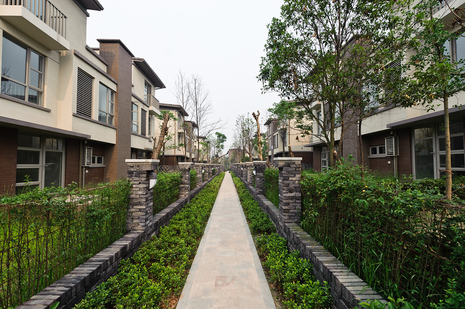 項目地處旅游勝地青城山前山門,結(jié)合住宅民居的規(guī)劃思想。根據(jù)不同級別的道路,使社區(qū)分級為“ 街 — 巷 — 院 ”。產(chǎn)品以合院的形態(tài)為主,分為四合院、六合院、八合院等院落空間。強調(diào)院落空間的共享和私密相結(jié)合。作為度假性質(zhì)的城市第二居所,產(chǎn)品本身將地域性、文化性與生活品質(zhì)有機地聯(lián)系起來,具有一定的創(chuàng)新性。