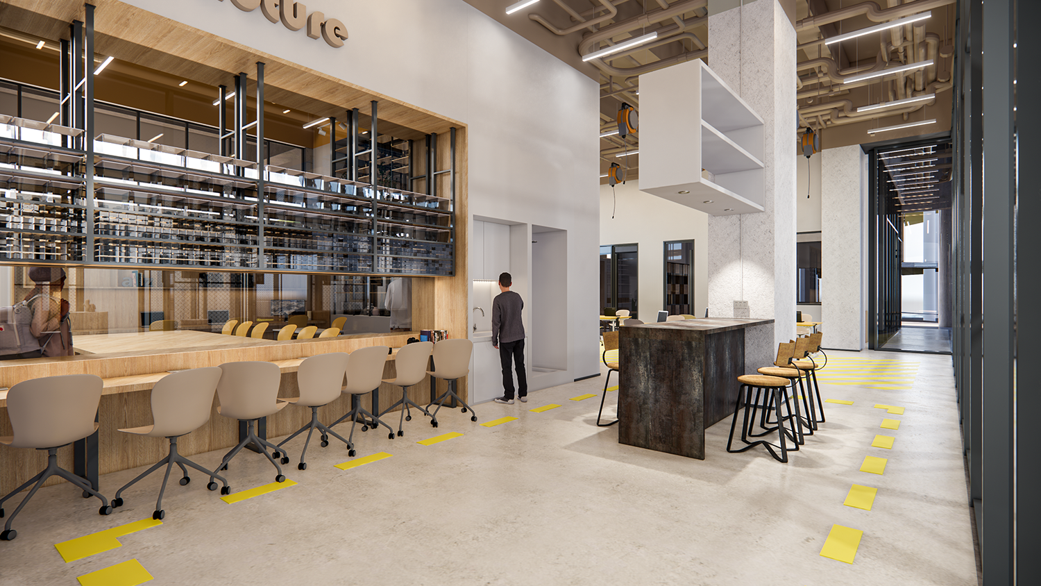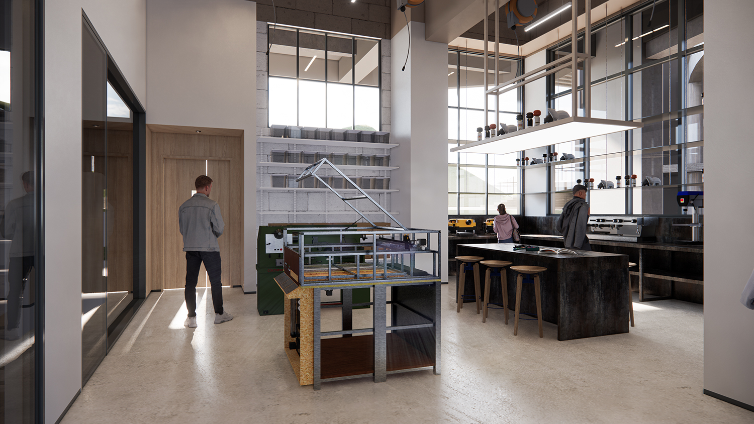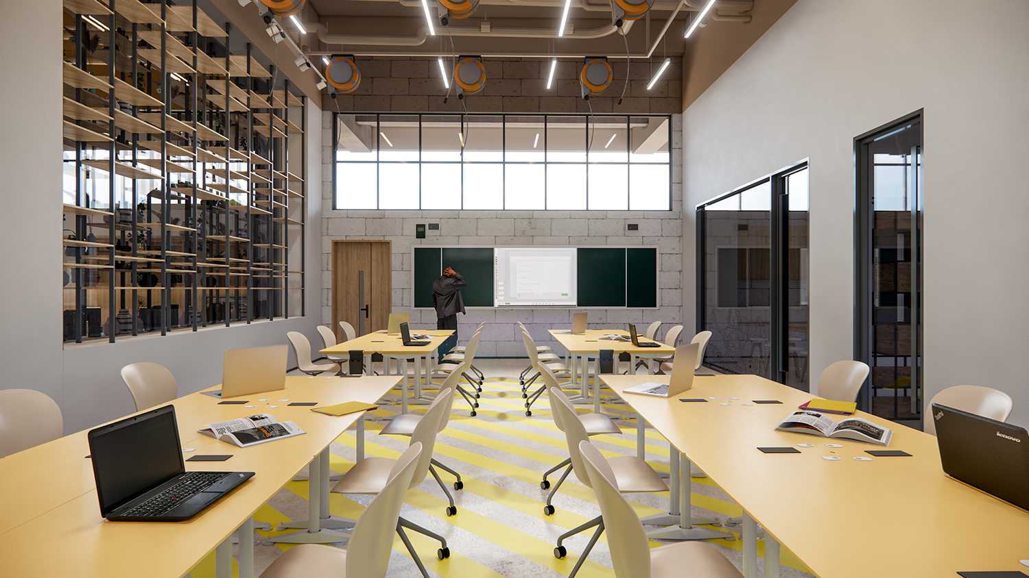 項目是一個先進(jìn)的科學(xué)和藝術(shù)探索中心,空間包括智能制造工坊,機器人工坊,時尚藝術(shù)工坊,人工智能工坊,數(shù)字音視頻工坊,生物探索花園,學(xué)生在這里可以實現(xiàn)跨學(xué)科學(xué)習(xí)。山鼎設(shè)計結(jié)合工業(yè)風(fēng)和綠色建筑的理念,為孩子們呈現(xiàn)極具現(xiàn)代科技感的空間感受。