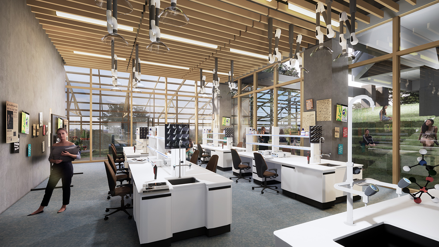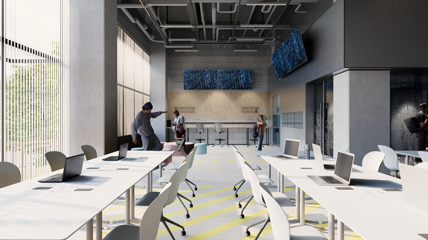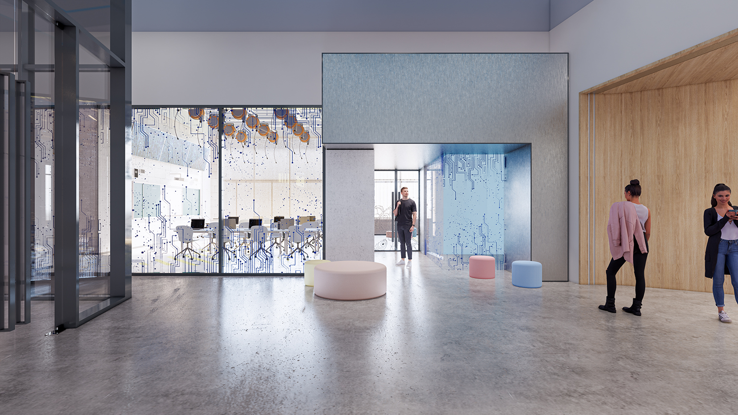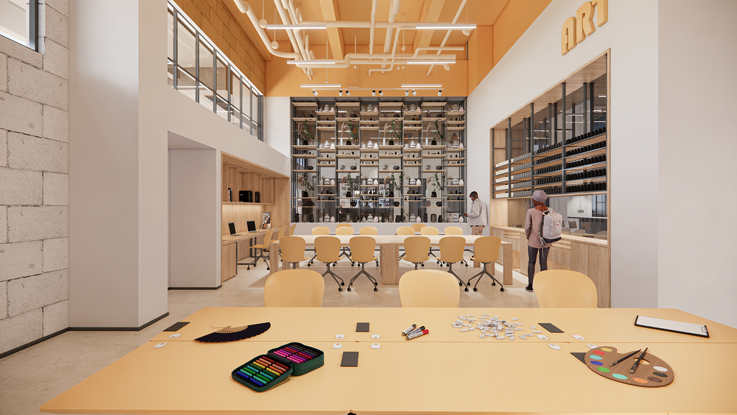 項目是一個先進(jìn)的科學(xué)和藝術(shù)探索中心,空間包括智能制造工坊,機器人工坊,時尚藝術(shù)工坊,人工智能工坊,數(shù)字音視頻工坊,生物探索花園,學(xué)生在這里可以實現(xiàn)跨學(xué)科學(xué)習(xí)。山鼎設(shè)計結(jié)合工業(yè)風(fēng)和綠色建筑的理念,為孩子們呈現(xiàn)極具現(xiàn)代科技感的空間感受。