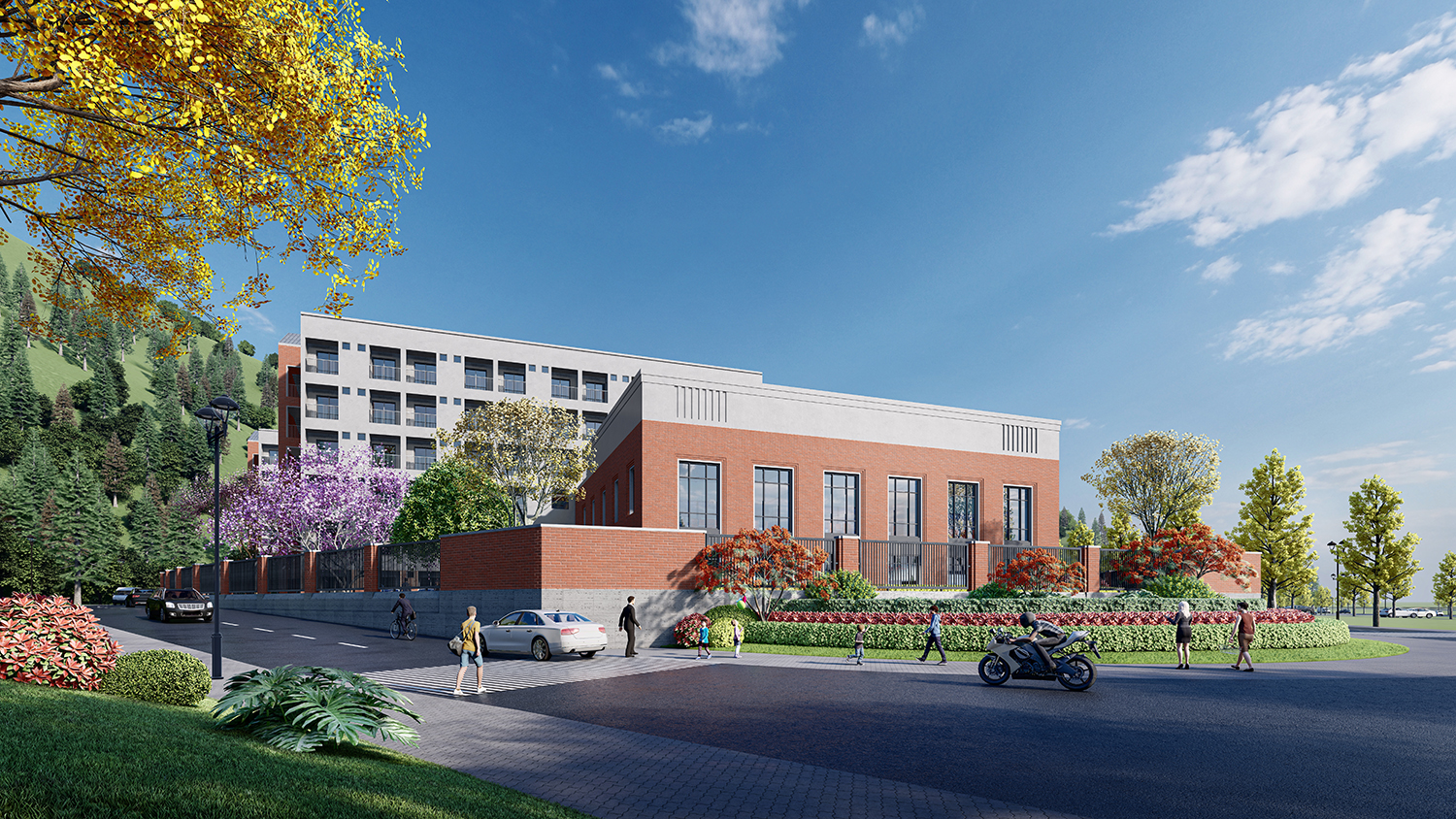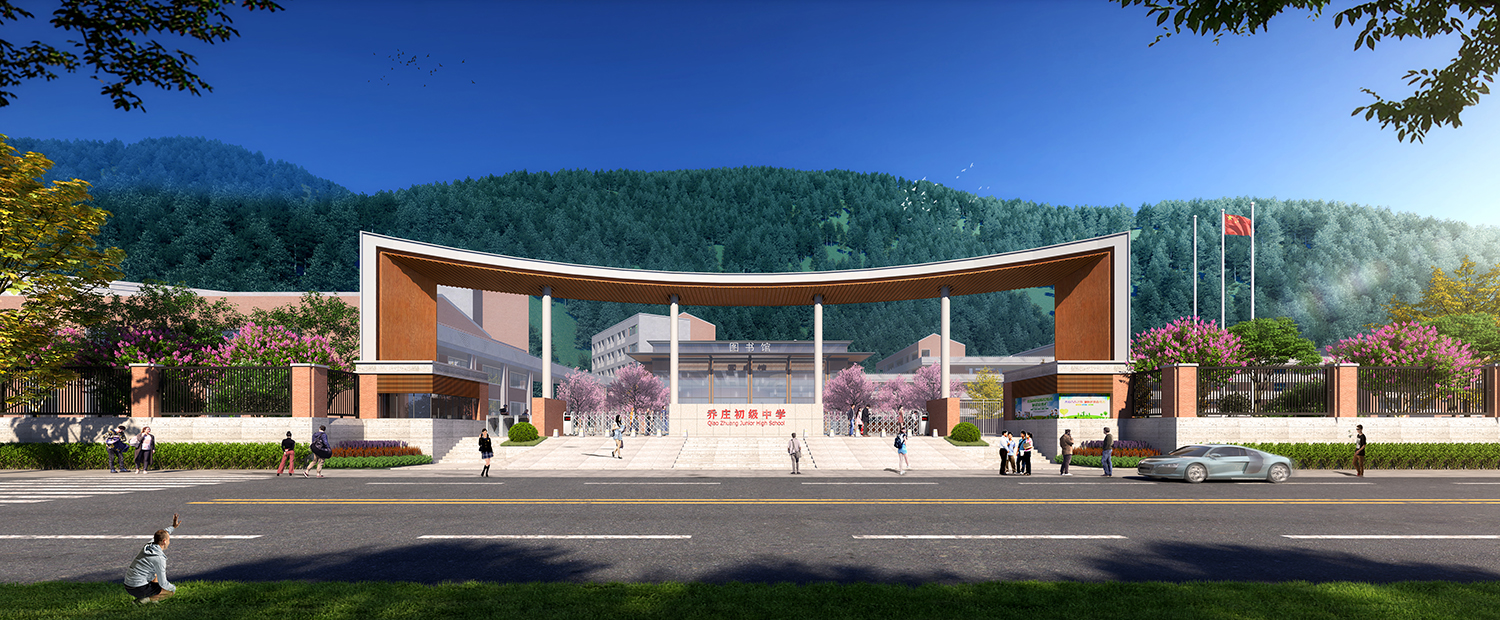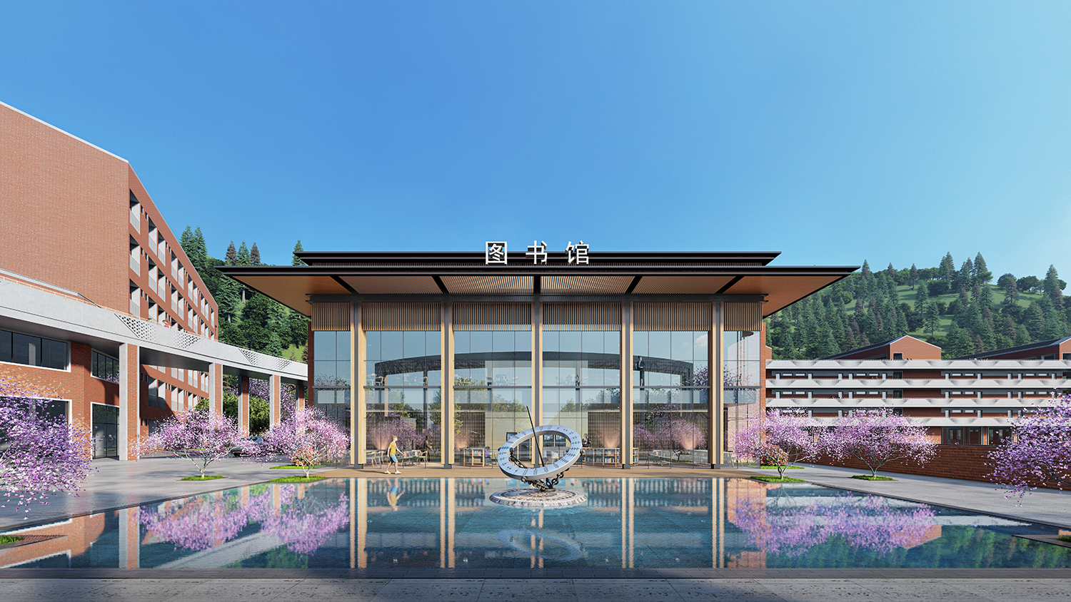 項(xiàng)目設(shè)計(jì)充分結(jié)合地域地形特點(diǎn),建筑以運(yùn)動(dòng)場(chǎng)地為中心呈半圍合式規(guī)劃布局,發(fā)射線(xiàn)式的空間布局形成井然有序的學(xué)??臻g序列。項(xiàng)目主要包含6棟多層建筑和一層地下車(chē)庫(kù),包括教學(xué)樓、圖書(shū)綜合館、行政辦公樓、學(xué)生宿舍、教師管理用房、風(fēng)雨操場(chǎng)等,均沿用地外側(cè)呈行列式布局,動(dòng)靜有序,界面舒朗。項(xiàng)目面對(duì)城市主界面設(shè)置運(yùn)動(dòng)場(chǎng)地形成開(kāi)闊空間,同時(shí)在城市主要道路主要轉(zhuǎn)角處設(shè)置對(duì)景建筑,與城市有機(jī)融合,和諧共生。首層利用局部架空為園區(qū)釋放出更多活動(dòng)空間,促進(jìn)師生活動(dòng)交流,同時(shí)也打開(kāi)了園區(qū)東西向視野,營(yíng)造出視野通透、豐富立體的空間品質(zhì)。,統(tǒng)一簡(jiǎn)潔的橫向欄桿線(xiàn)條讓校園具有韻律感,磚紅色及米白色相間形成建筑的虛實(shí)對(duì)比和體塊關(guān)系,展現(xiàn)了一個(gè)優(yōu)雅的校園風(fēng)情園區(qū)。