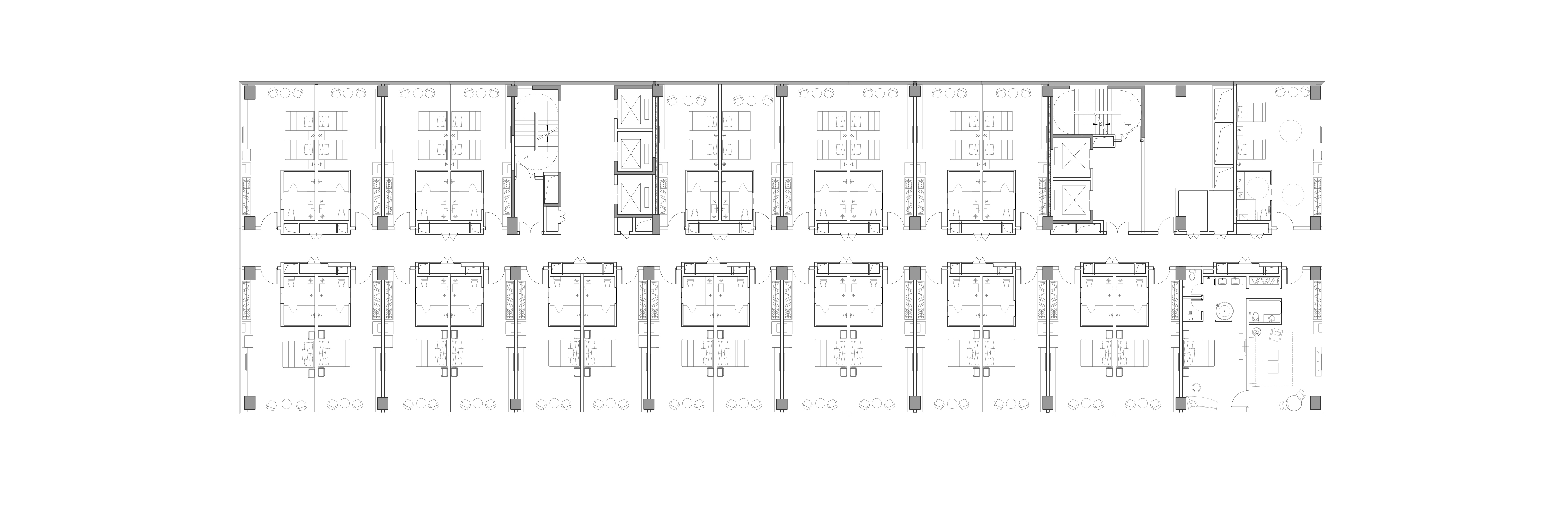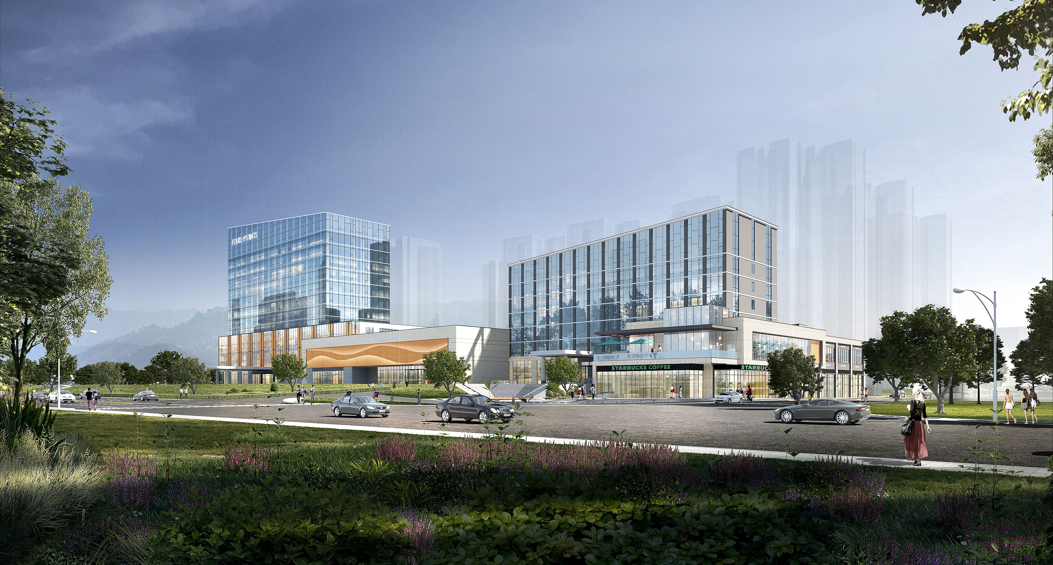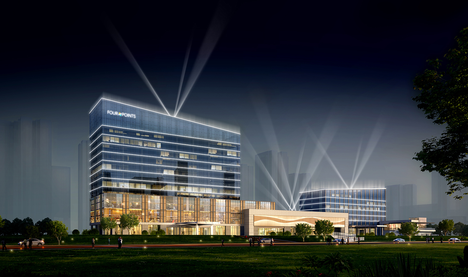 五星級(jí)酒店定位為福朋喜來(lái)登,首層主要功能包括接待區(qū)和餐飲區(qū),包含接待大廳、大堂吧、全日餐廳及大型宴會(huì)廳;二層設(shè)有中餐區(qū)和會(huì)議區(qū);三層設(shè)有康體、健身中心、茶樓和屋頂花園等,客房層共八層,共設(shè)208間客房。商業(yè)酒店共六層,設(shè)96間客房。商業(yè)街區(qū)為兩層布局,為酒店及周邊社區(qū)提供完善的配套服務(wù)。