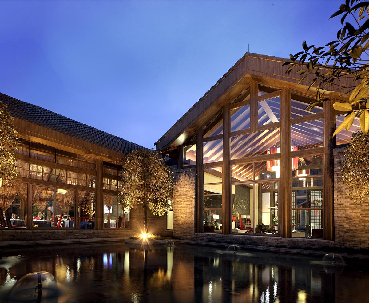 建筑布局和形態(tài)塑造借鑒四川當?shù)亟ㄖ木?,充分體現(xiàn)新津的文脈特征和風土人情為當?shù)刎Q立高標準的豪華酒店建筑標桿,成為當?shù)刂匾某鞘信涮坠?jié)點。