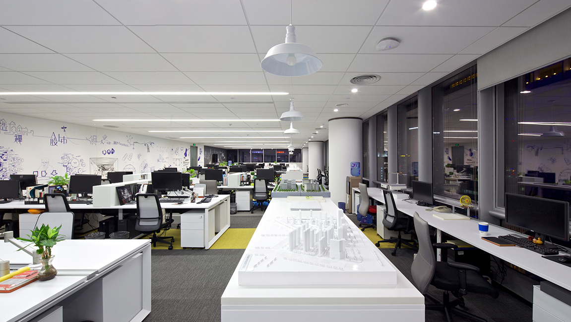 項目的辦公家具全部采用全球第一大辦公家具品牌Steelsace提供,地毯為全球第一大塊毯SHAW提供, 另外還使用了德國旭格的推拉門、英國索恩THORN的燈具、星牌優(yōu)時吉的礦棉板等,力求打造高效、靈活、科技、環(huán)保的辦公空間。墻面采用絲網(wǎng)印刷技術(shù), 設(shè)置拳擊沙袋區(qū),這些既體現(xiàn)了企業(yè)文化,同時也達(dá)到辦公環(huán)境與家具、地毯的渾然天成,增強了員工工作中的愉悅度。