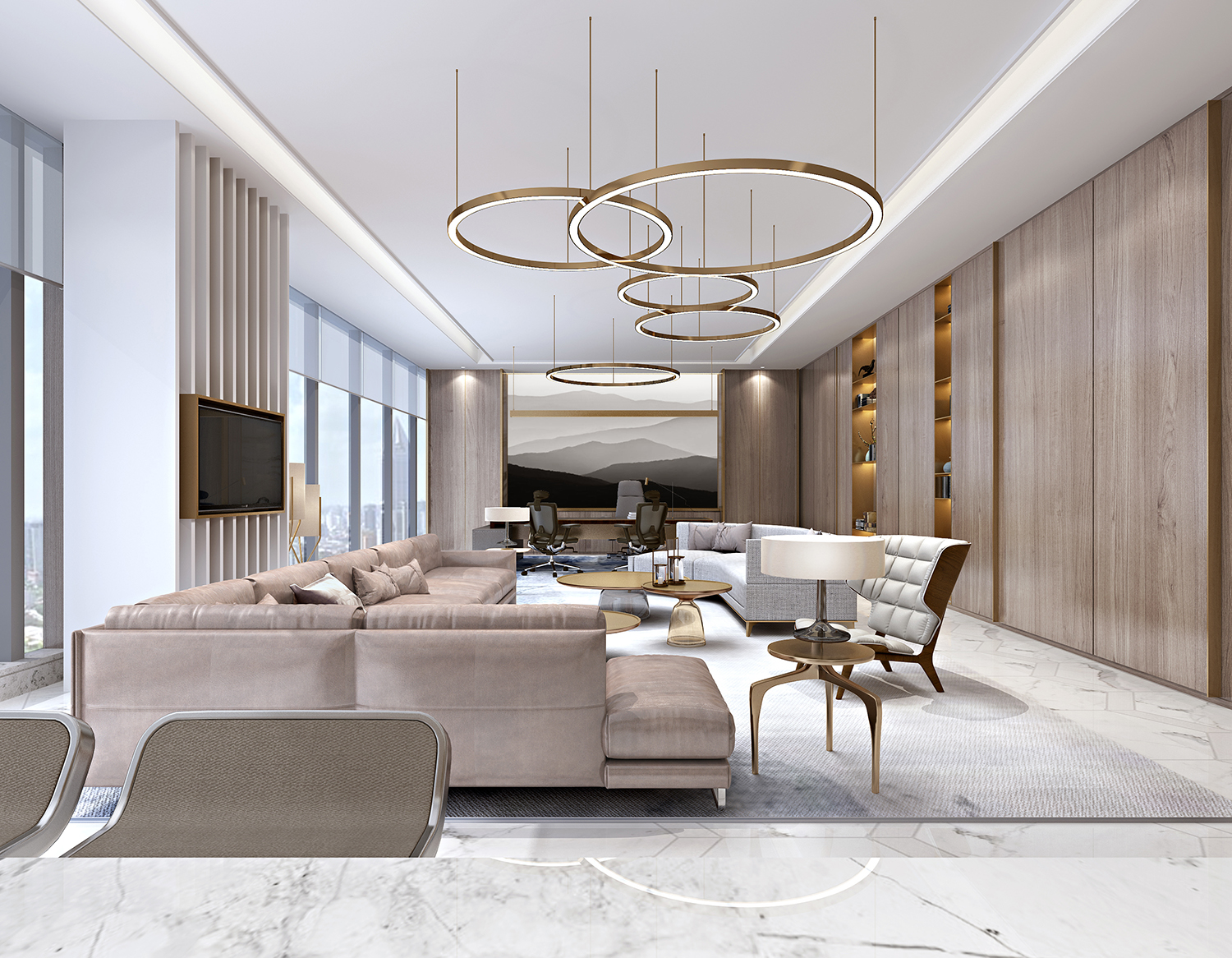 項(xiàng)目是某金融投資公司總部,該公司不僅是一家金融公司,還是一個(gè)以高科技、互聯(lián)網(wǎng)為主營(yíng)板塊的多元化集團(tuán)。因此,室內(nèi)設(shè)計(jì)不僅保持傳統(tǒng)金融公司沉穩(wěn)、大氣、豪華的特點(diǎn),還加入了現(xiàn)代、時(shí)尚、科技的設(shè)計(jì)元素。傳統(tǒng)與創(chuàng)新恰到好處的融合在一個(gè)空間之內(nèi)。