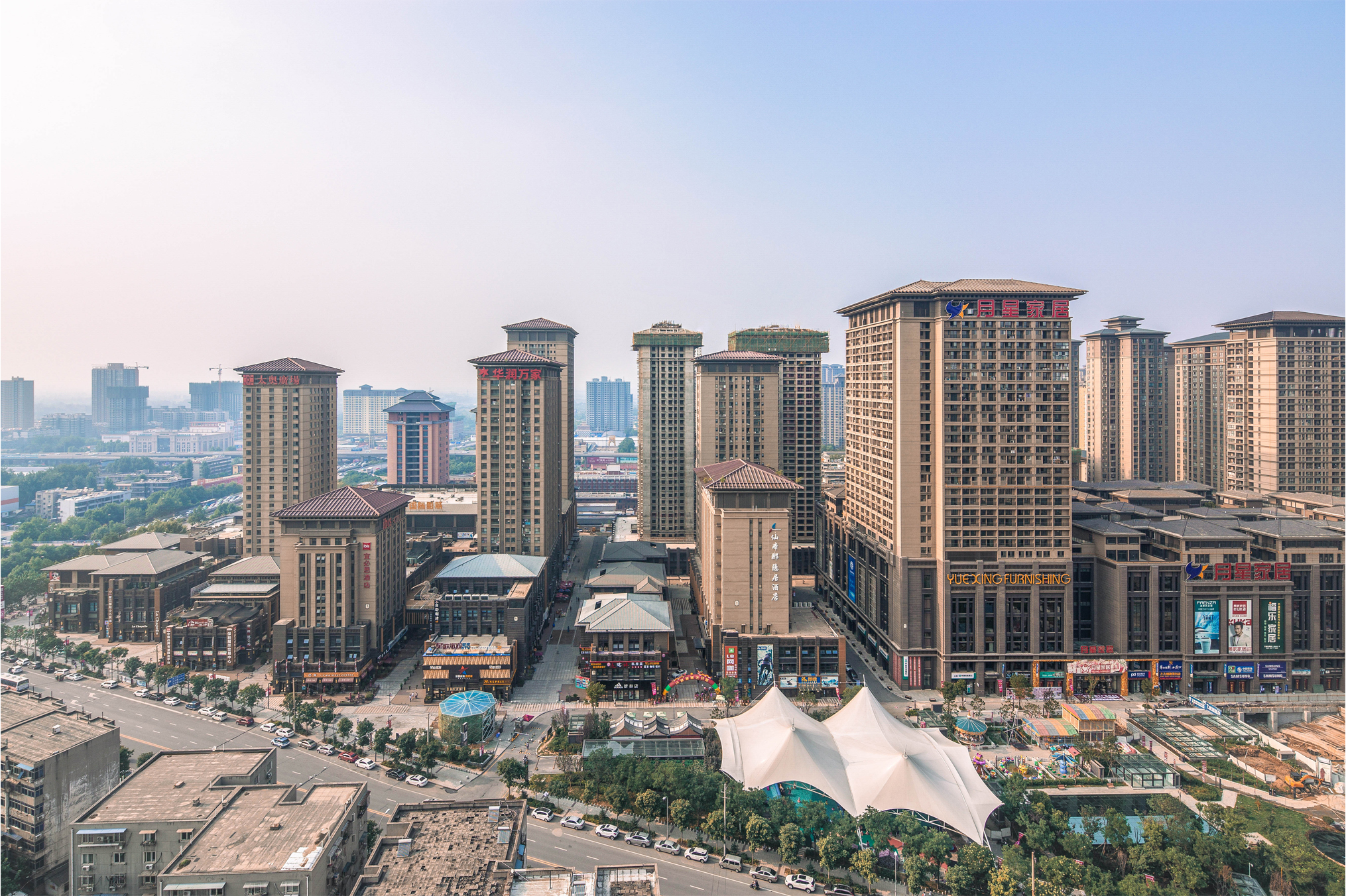 項(xiàng)目是集商業(yè)、辦公、酒店為一體的城市綜合體。以商業(yè)內(nèi)街結(jié)合商業(yè)廣場(chǎng)的形式創(chuàng)造出豐富的商業(yè)界面,同時(shí)通過立體空間的塑造激活各種商業(yè)業(yè)態(tài),形成區(qū)域內(nèi)活躍的商業(yè)中心。建筑風(fēng)格上提取傳統(tǒng)建筑的語(yǔ)言符號(hào)和比例,注重細(xì)部刻畫的空間氛圍營(yíng)造,通過建筑與環(huán)境的統(tǒng)一打造,渲染出濃郁的商業(yè)文化。