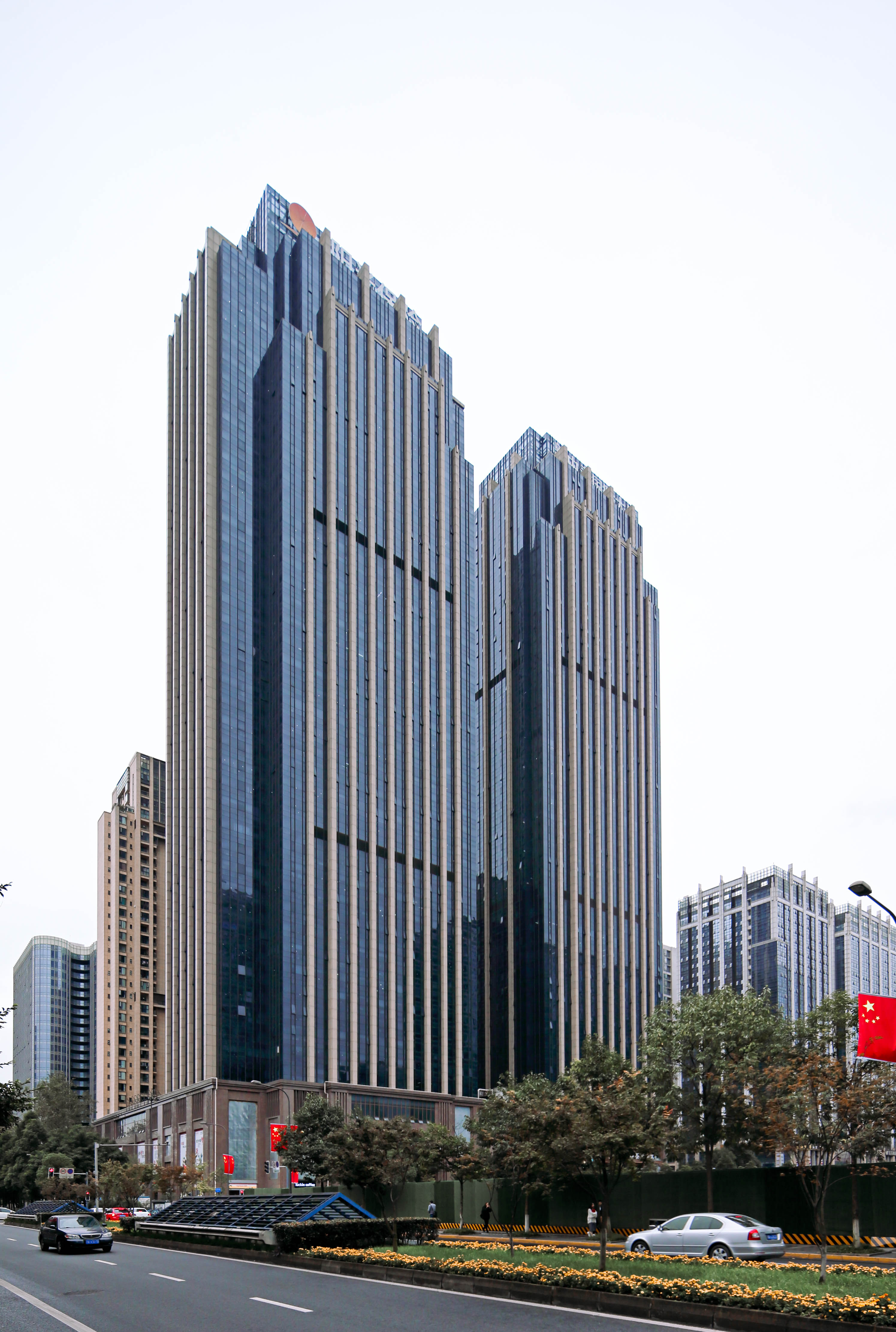 項目位于成都高新區(qū)金融總部商務(wù)區(qū)14號地塊。項目包含兩棟197m高的甲級寫字樓和公寓式辦公樓、兩棟115m至128m高的住宅,以及四層商業(yè)裙樓組成的大型商業(yè)綜合體。建筑設(shè)計采用簡潔的里面設(shè)計風(fēng)格,采用頂層錯落的手法,盡可能地減小建筑容積率高、體量過大與基地面積過小的矛盾。裝飾性和現(xiàn)代性的設(shè)計風(fēng)格,體現(xiàn)了建筑更加端莊與挺拔,體現(xiàn)了企業(yè)不斷超越的人文精神和力量。