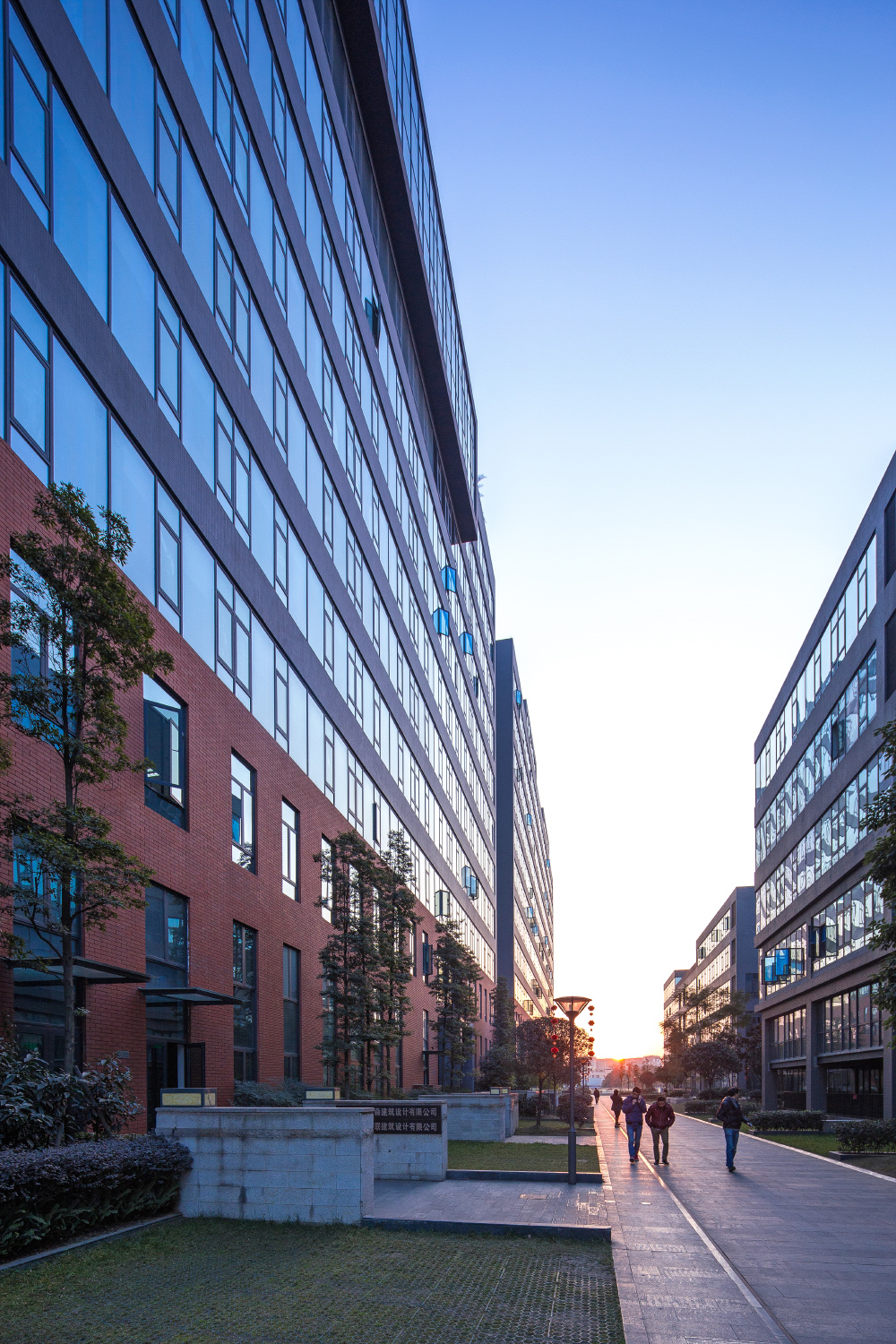 項(xiàng)目位于成都市武侯區(qū)的高新產(chǎn)業(yè)園,東側(cè)毗鄰三環(huán)路,隨著時(shí)代的發(fā)展,園區(qū)已經(jīng)不再適合工業(yè)生產(chǎn),這里更適合規(guī)劃成一個(gè)新型的復(fù)合型創(chuàng)意園區(qū)。因基地和建筑功能的屬性,不受到規(guī)劃對(duì)建筑日照的控制要求,所以采用北低南高的規(guī)劃布置,形成有豐富層次感的城市天際線。建筑單體分為三個(gè)主要客戶類型,有可以作為企業(yè)總部的別墅獨(dú)棟,符合新型科技服務(wù)產(chǎn)業(yè)辦公特點(diǎn)的多層大空間單元和適用于創(chuàng)業(yè)初期團(tuán)隊(duì)的高層公寓式小單元。 建筑群的首層設(shè)置園區(qū)的商業(yè)配套,局部架空形成交互空間。