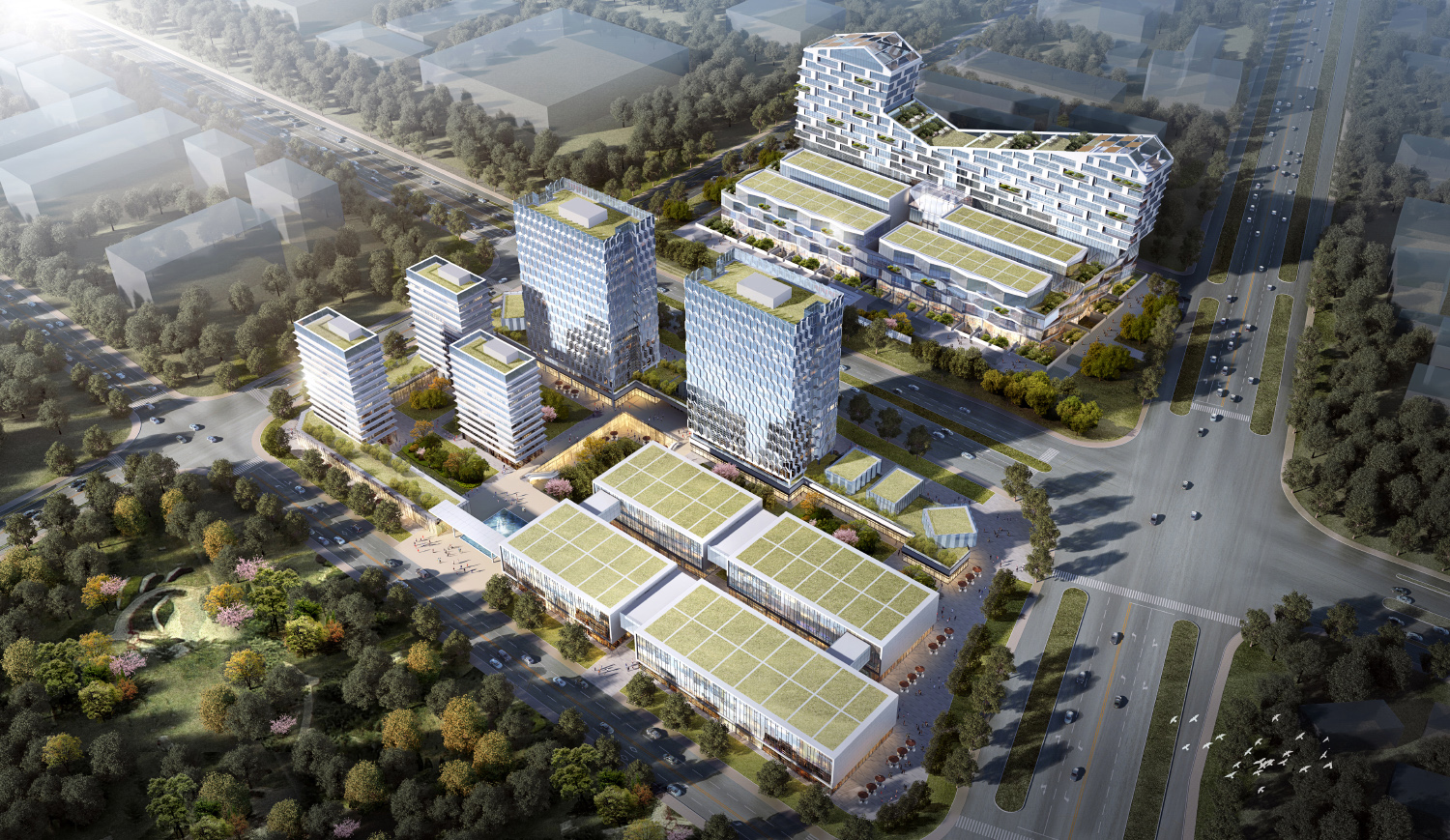 項目位于東莞西部,臨近京港澳高速、湖景大道等,距離觀湖別墅區(qū)500米,橫港水庫1000米,交通便利,環(huán)境優(yōu)美。科技進步是未來發(fā)展的趨勢,而最能代表未來科技的技術(shù)莫過于芯片技術(shù),芯片技術(shù)是代表人類的智慧,反映了當(dāng)前科技水平的高低。項目里面設(shè)計靈感來源于芯片的電路圖,體現(xiàn)了建筑的科技感和時代感。項目立面還引用中國傳統(tǒng)文化中的竹元素,象征著設(shè)計所倡導(dǎo)的綠色節(jié)能和節(jié)節(jié)生機。立面點綴與建筑整體形成了一個充滿活力的、健康的綜合體。