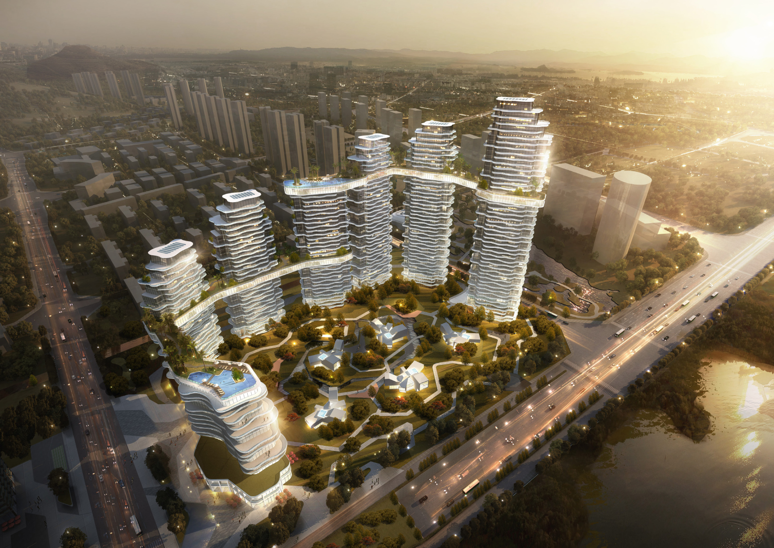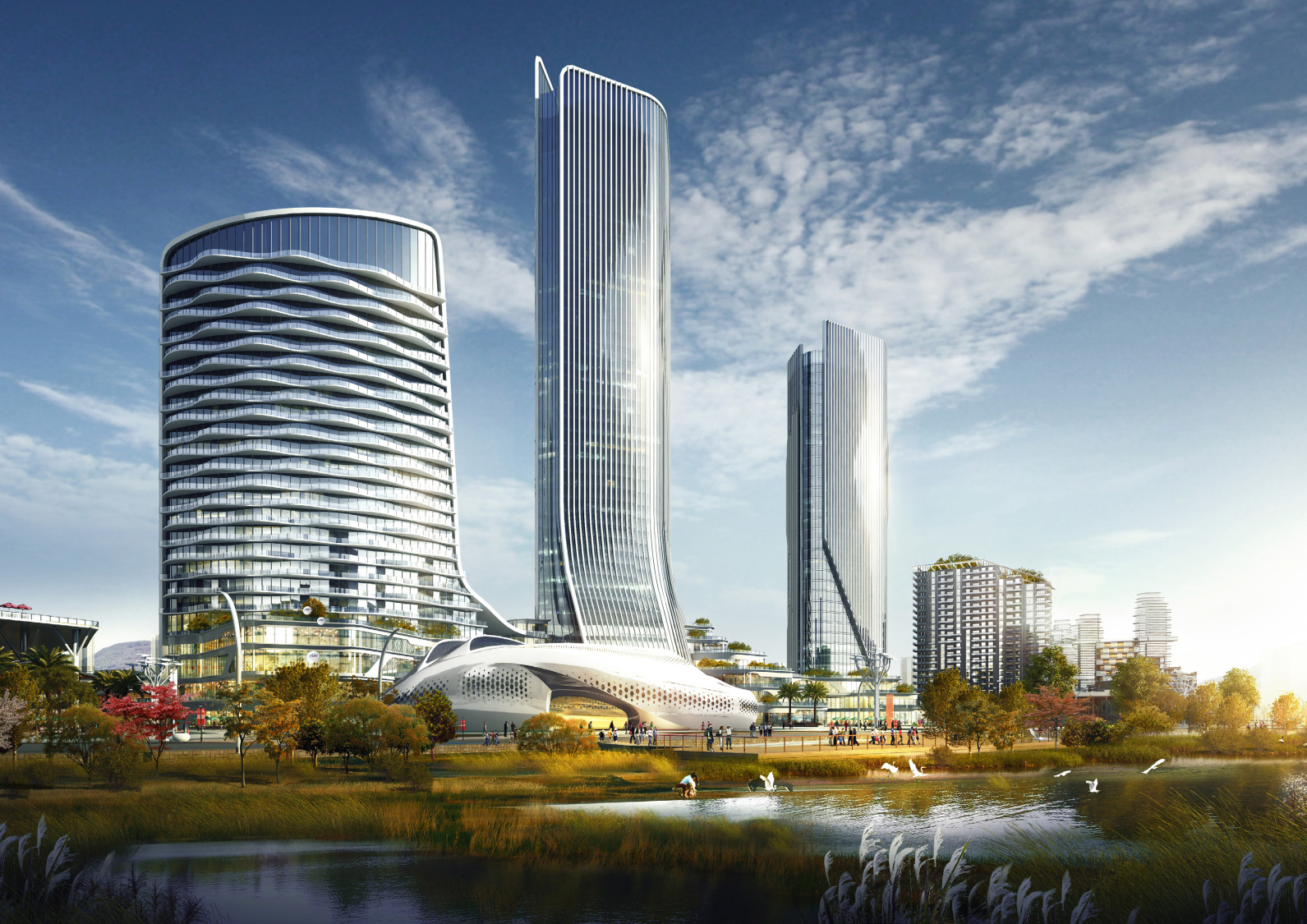 本項(xiàng)目獨(dú)特的融合商務(wù)、商業(yè)、高品質(zhì)居住、城市公園、精品教育,將使得這城市從清晨到深夜都能充滿著生意與朝氣。這些建筑將依次有組織的形成一系列的公共設(shè)施,提供了一個(gè)誘人的環(huán)境。通過(guò)洱海相連的戶外園林廣場(chǎng),能使人們有回歸大自然的感覺(jué)。對(duì)外開(kāi)放的工作和生活空間將提供一個(gè)更好的生活工作體驗(yàn)。適當(dāng)重新利用現(xiàn)有的自然景觀不但增添了一種獨(dú)特的感覺(jué),并創(chuàng)造一個(gè)與過(guò)去相結(jié)合的意境。
