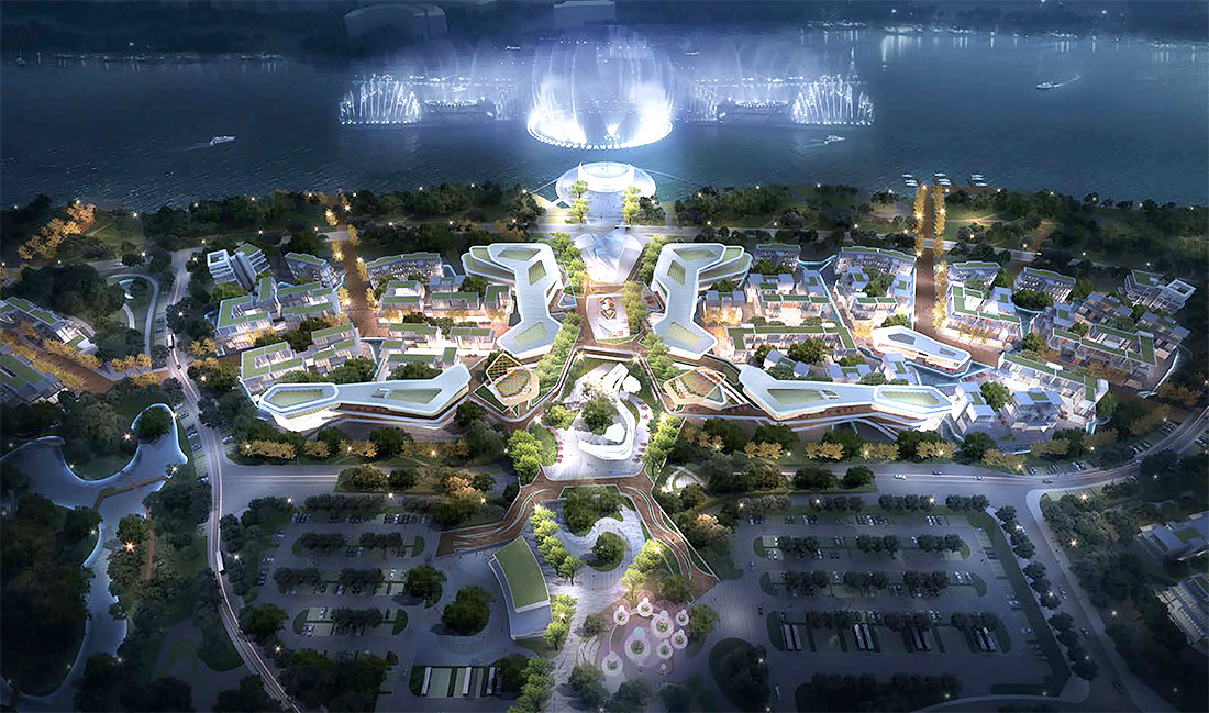 項(xiàng)目規(guī)劃以一軸(中部公建形象軸),一心(中心廣場),一帶(地塊之間串聯(lián)的景觀帶),一環(huán)(小火車觀光路線 1+N 長短線)串聯(lián)多島(民宿組團(tuán)),打造“成渝·遂寧精致旅居度假勝地”成就遂寧旅游城市旗幟性示范區(qū)。搭建中央主軸及活力綠帶激發(fā)濱水商業(yè)活力,植入水幕蓮花燈光秀,構(gòu)筑美妙時(shí)空的歡樂港灣。