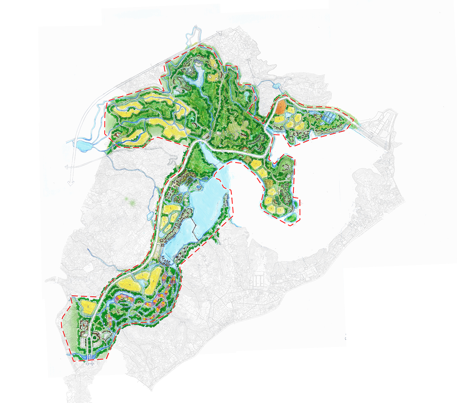 項(xiàng)目以區(qū)域水環(huán)境綜合治理與利用為前提,以“一湖兩河”為核心,以生態(tài)文化資源為基礎(chǔ),打造集休閑觀光、運(yùn)動(dòng)娛樂、頤養(yǎng)居住于一體的度假區(qū)。創(chuàng)建西南地區(qū)最佳觀花樂水旅游度假目的地。