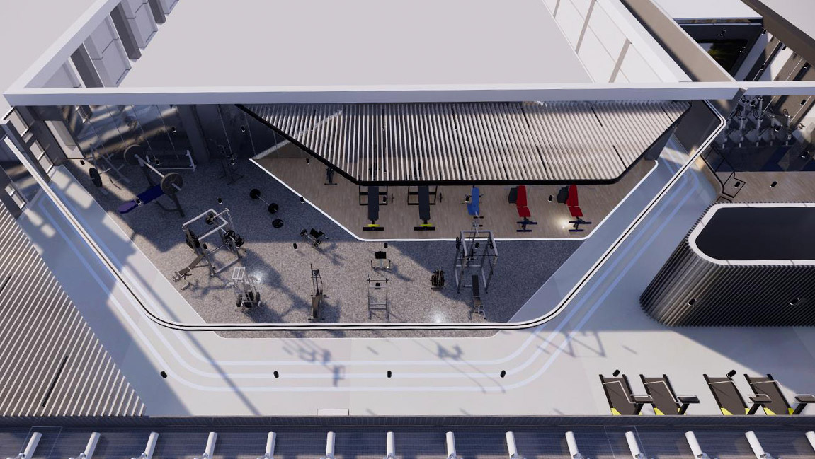 項(xiàng)目地位于,北清路與永澤南路交匯處,航天城內(nèi)。鄰近16號(hào)線地鐵永豐南站。本項(xiàng)目共三層,現(xiàn)一層為游泳館、大堂及配套用房、二層為活動(dòng)區(qū)及員工宿舍用房,三層為保齡球及配套用房。根據(jù)甲方要求,將二層改造為獨(dú)立的球類娛樂區(qū),將三層改造為綜合性健身房,涵蓋有氧訓(xùn)練區(qū)、力量訓(xùn)練區(qū)、功能性訓(xùn)練區(qū)以及一個(gè)獨(dú)立團(tuán)課操房和一個(gè)動(dòng)感單車房。