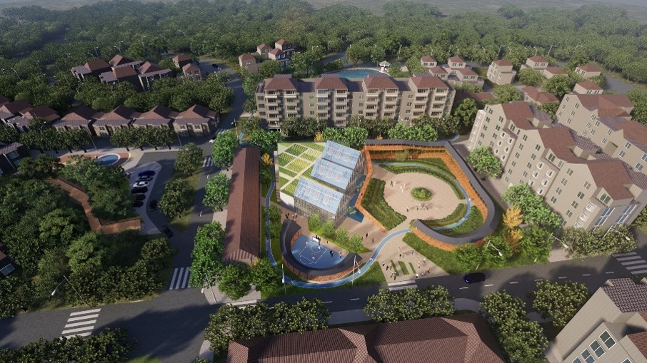項目借鑒成都傳統(tǒng)建筑元素,打造巴渝原鄉(xiāng)生活。項目的天空綠色農(nóng)場是世界上首個低碳,液壓能推動的城市垂直農(nóng)場系統(tǒng)。針對日益加劇的城市土地、生態(tài)資源等問題,該技術(shù)旨在用盡量少的空間,能源來種植更多,更安全的食材, 該系統(tǒng)在又高又窄的A字形結(jié)構(gòu)上種植生菜、菠菜以及各種亞洲綠色蔬菜,該結(jié)構(gòu)會慢慢地轉(zhuǎn)動植物,就像在摩天輪上一樣,以確保他們得到足夠的陽光。項目為居民提供交流活動場所,全年不間斷鄰里活動的組織增強(qiáng)居民歸屬感。同時,項目注重整合周圍資源,為不同年齡的人提供活動場所,集休閑,運動于一身。